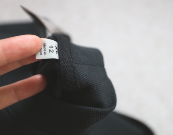 领口两处标 注意啊 都是缝在压条里面的 且这两处标 材质不一样