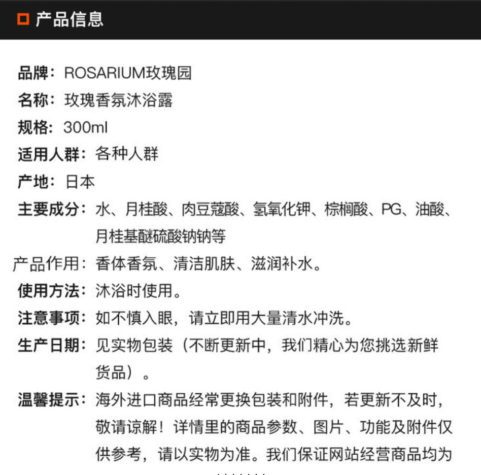 日本 Rosarium/玫瑰园香氛沐浴露 300ml 版本随机发