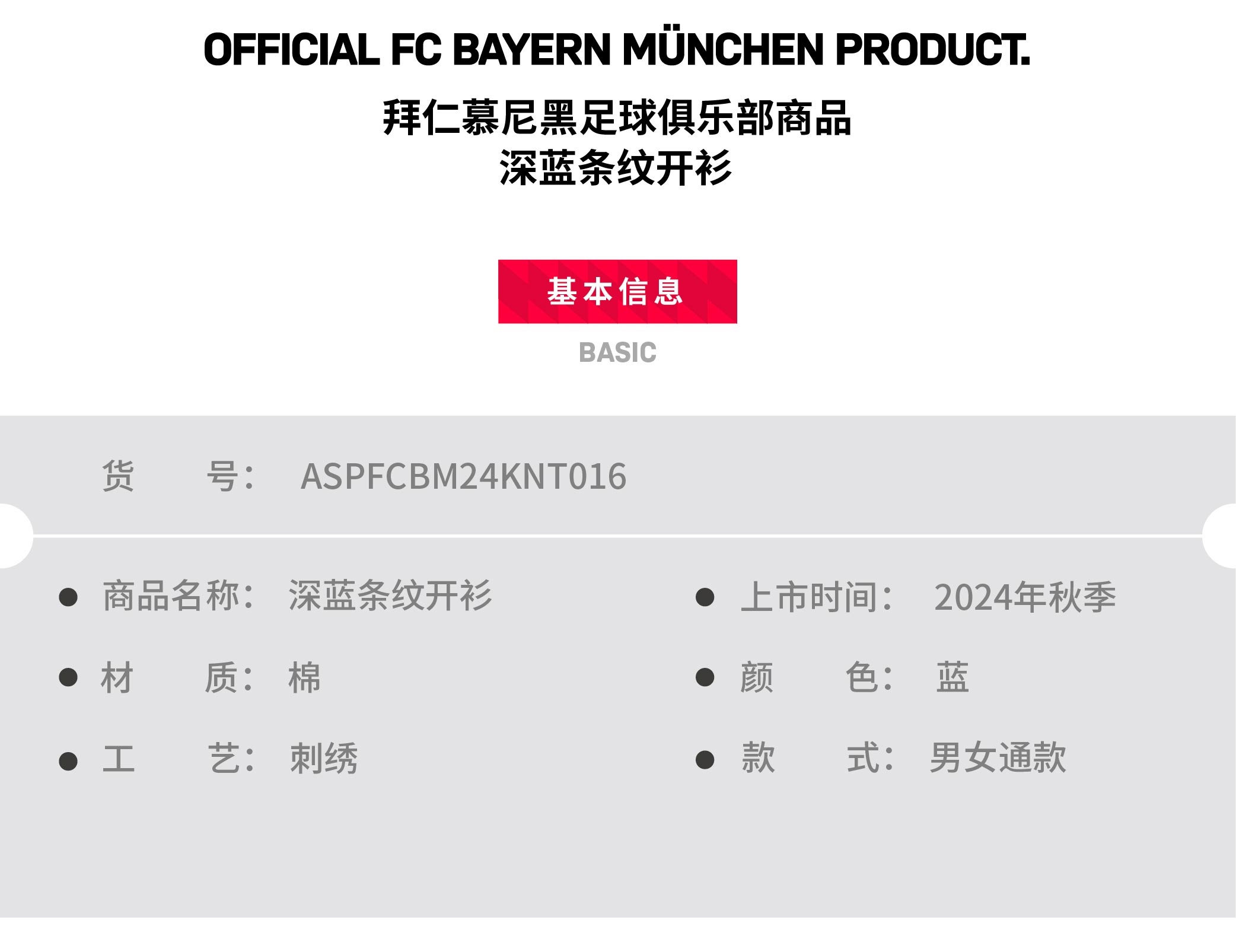 【官方正版】拜仁慕尼黑足球俱乐部 | 深蓝条纹开衫秋冬球迷