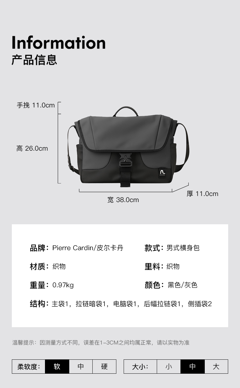 皮尔卡丹collide系列 多功能休闲斜挎包男士单肩包