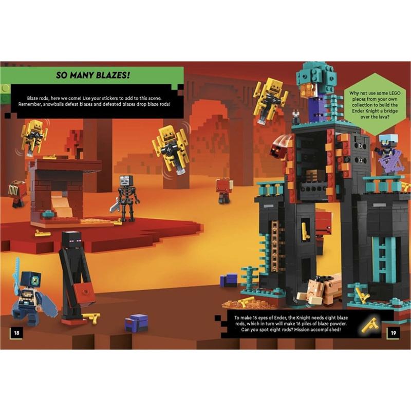 Also included are two pages of stickers that young LEGO Minecraft fans may use to complete some of the scenes.