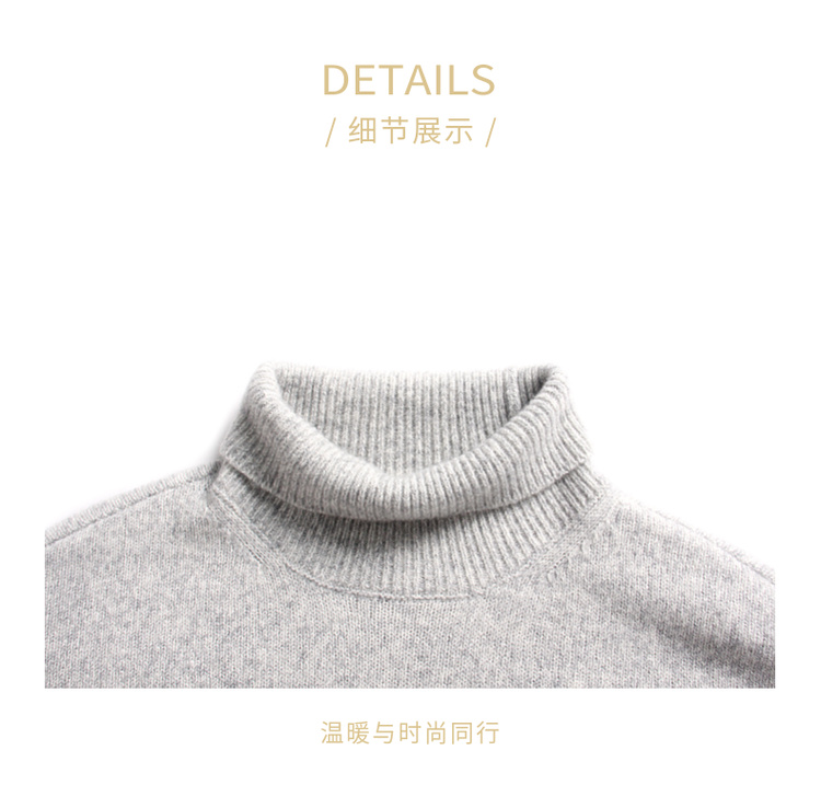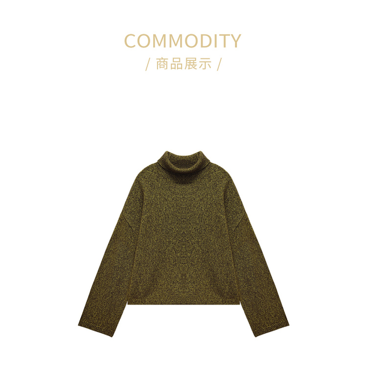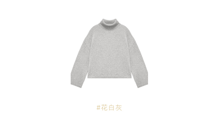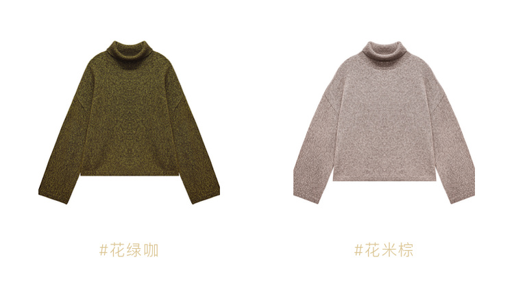高领宽松短款套头羊绒衫