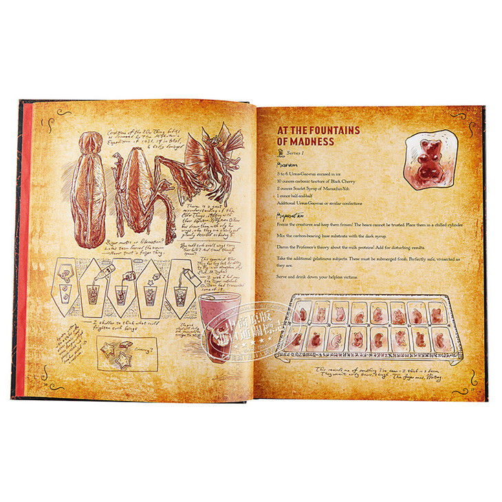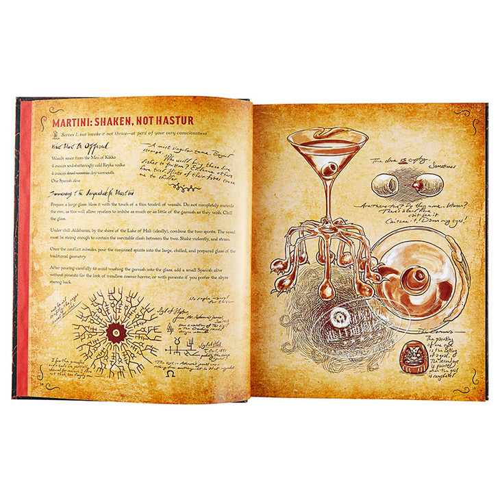 Like H. P. Lovecraft’s Necronomicon, the legendary and forbidden book of the dead that is “alien to all sane and balanced readers,” this cookbook contains many dark (but still delicious) secrets within its pages. The book comes infested with sanity- melting and mouth- watering illustrations, as well as annotations full of crazed discoveries and desperate warnings about the recipes that brave readers will undertake.