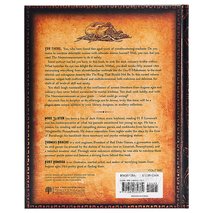 Reading about the slime- covered, non- Euclidean ruins of the sunken city of R’lyeh or the squamous, tentacled deity who slumbers there would make anyone hungry. Starting with the puns and working from there, authors Mike Slater and Thomas Roache have summoned forth 50 funny, bizarre, and horrible dishes such as: