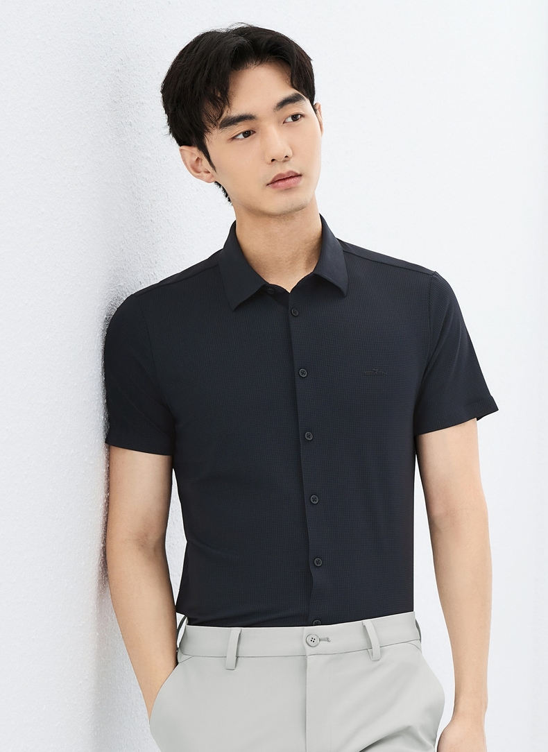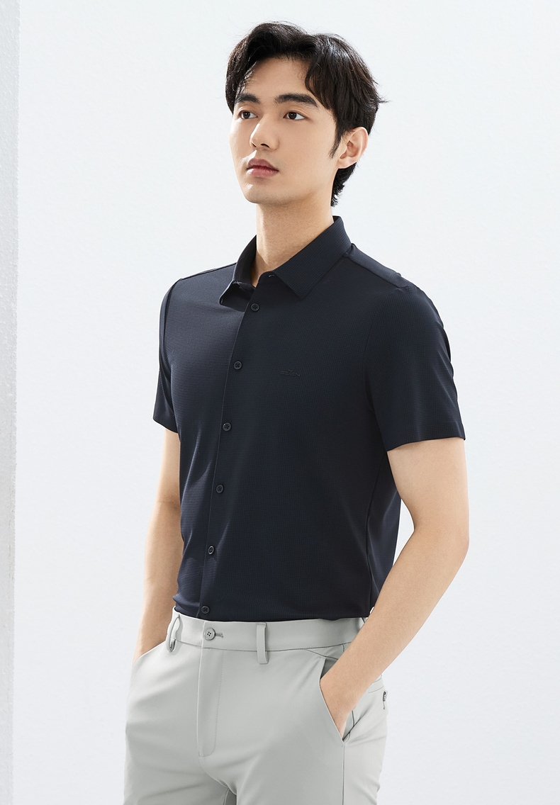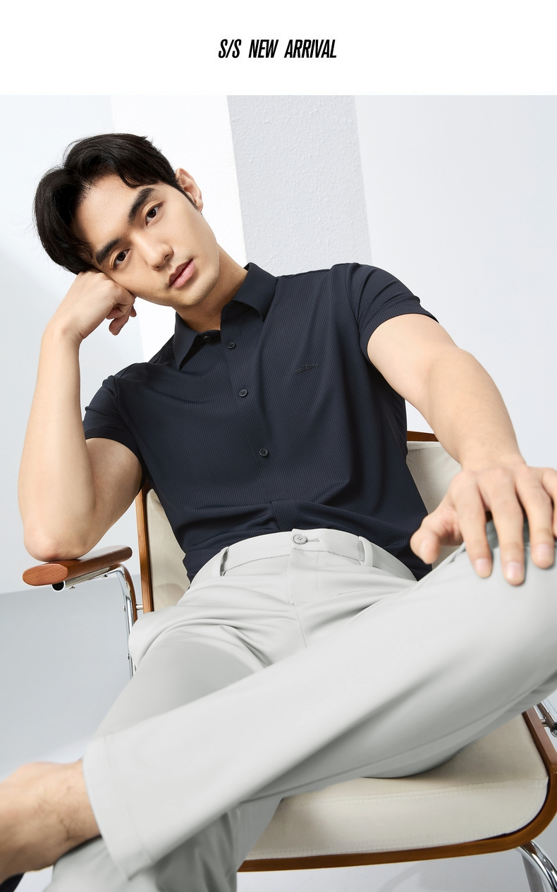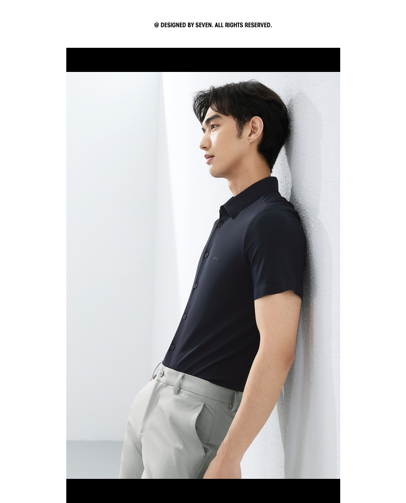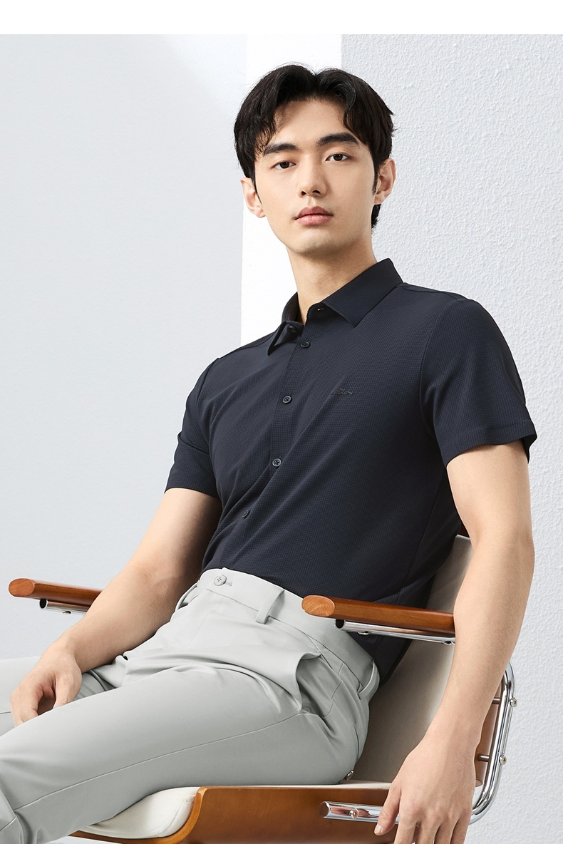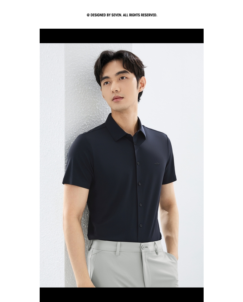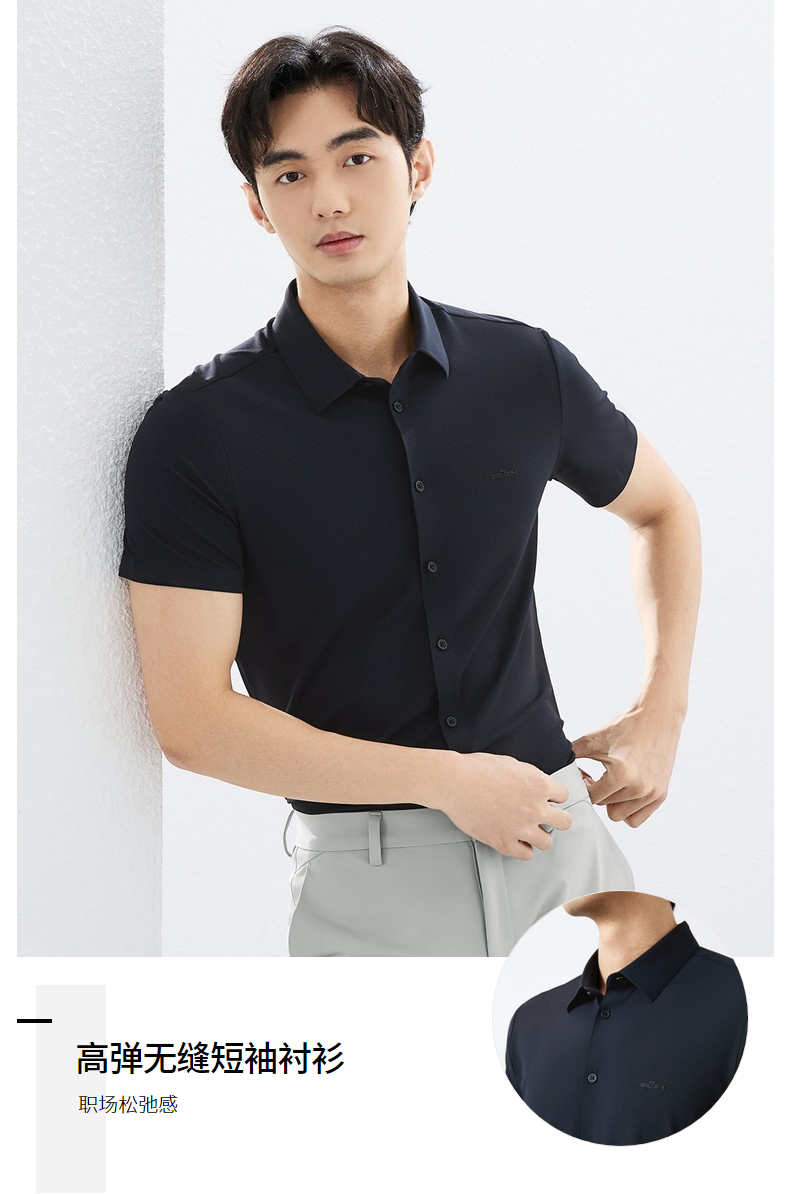 【无缝工艺/高弹】柒牌短袖衬衫男2025夏季新款时尚休闲翻领衬衣128A71290