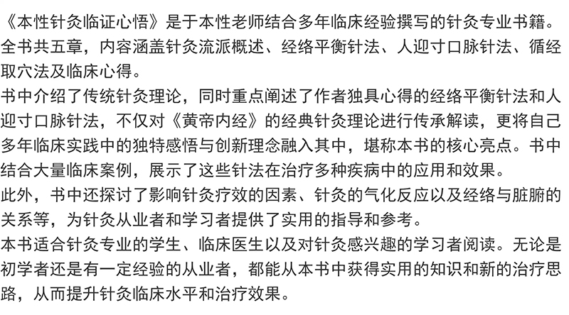 书名:本性针灸临证心悟