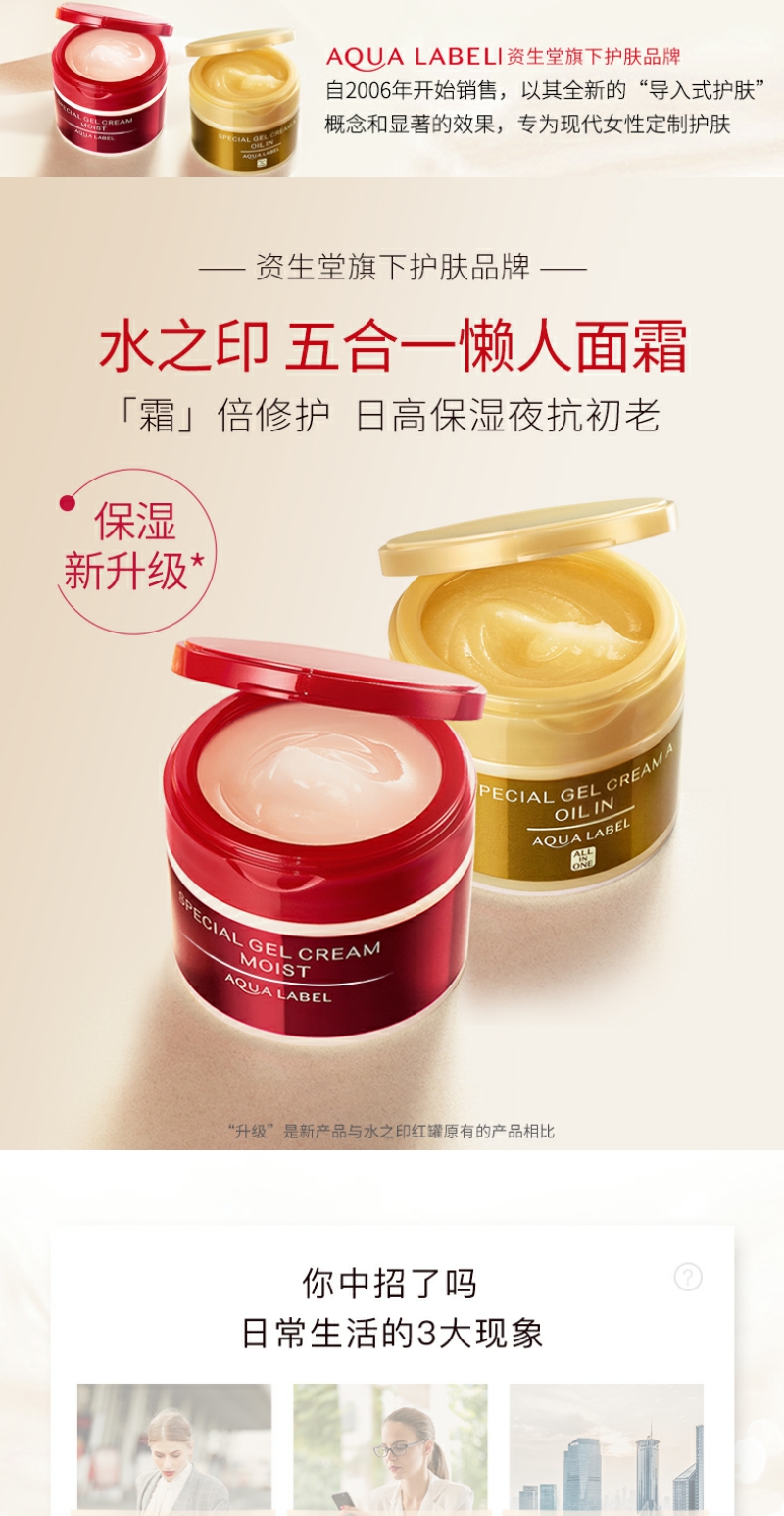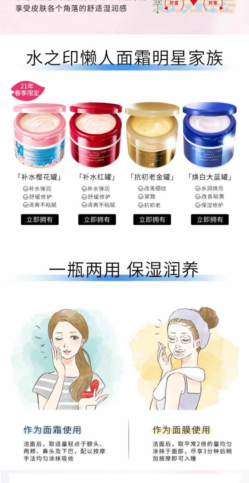 【YZ】资生堂水之印五合一面霜乳液补水保湿抗初老玻尿酸酸氨基酸睡眠面膜