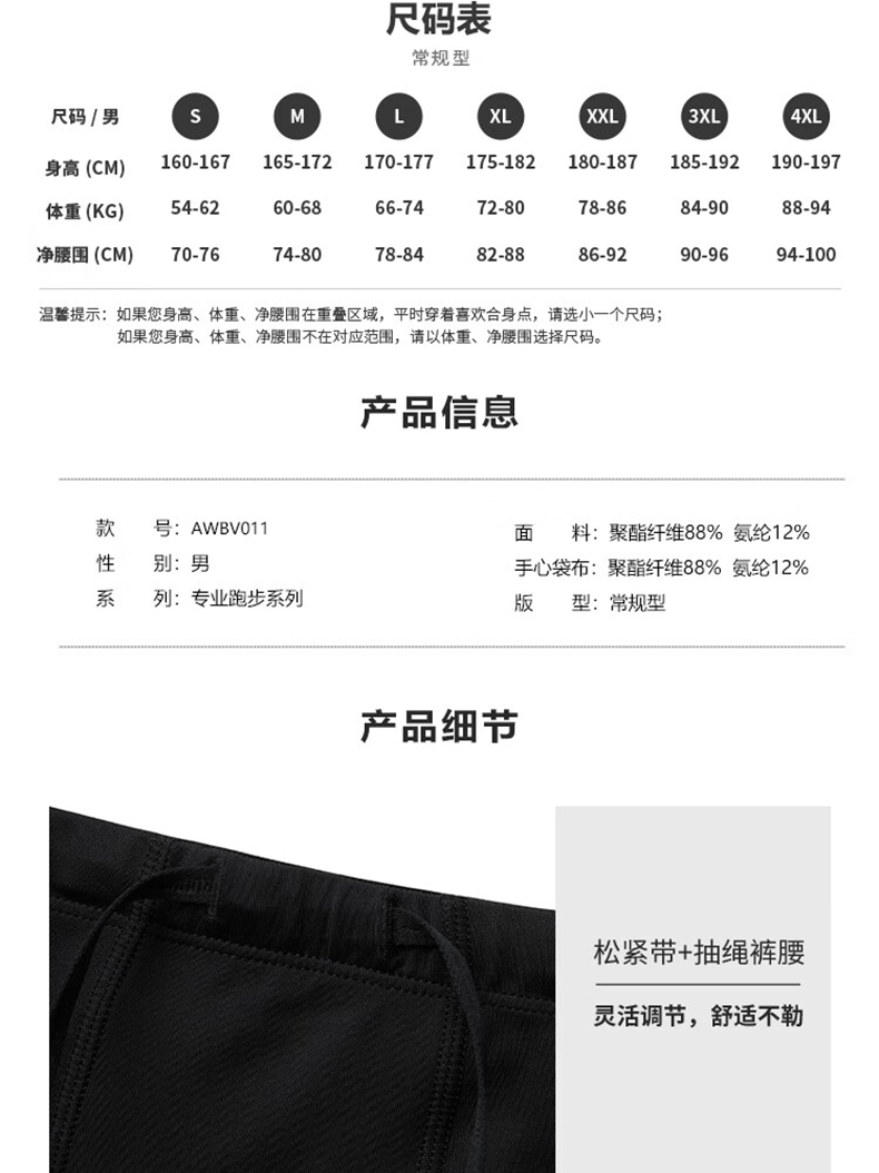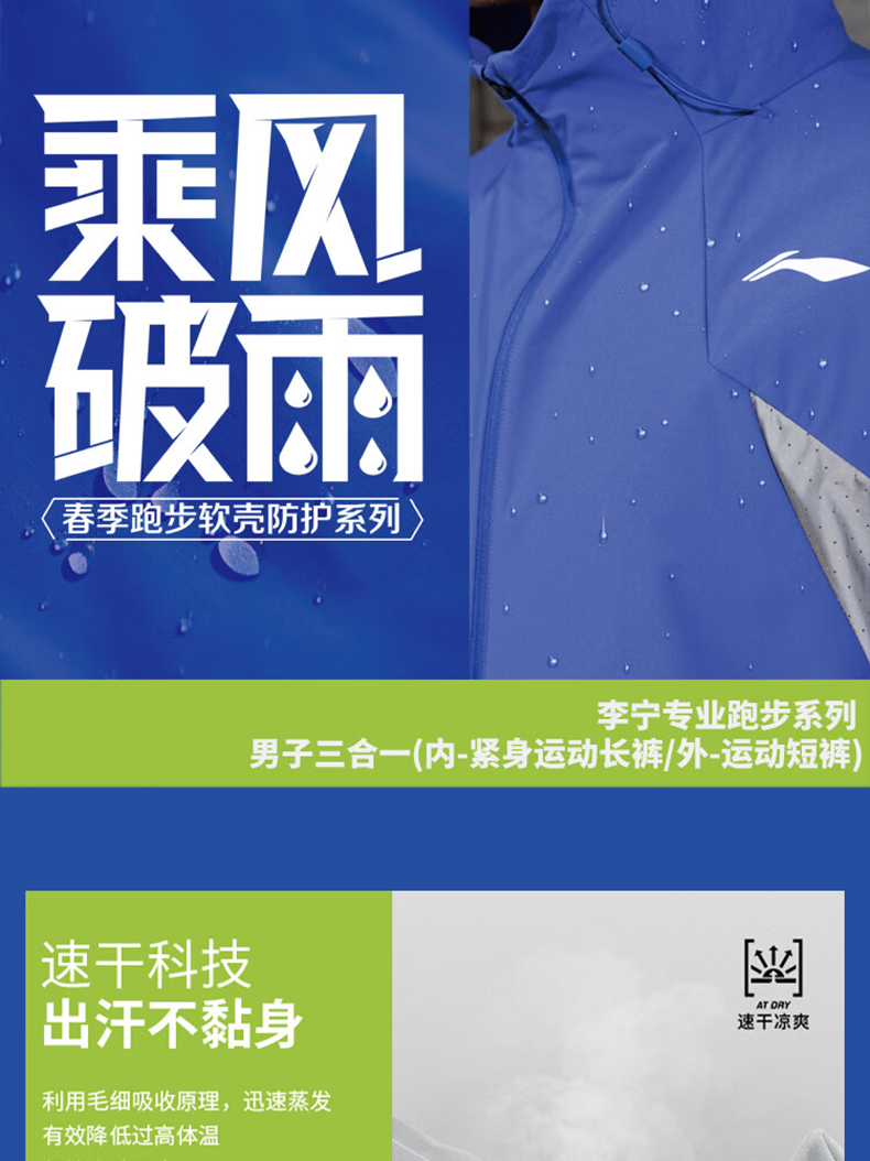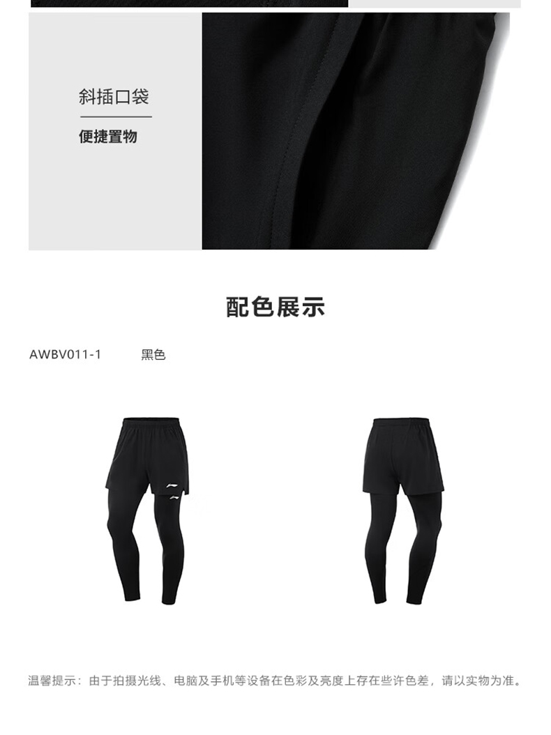 李宁 男款三合一速干凉爽跑步运动舒适平口裤