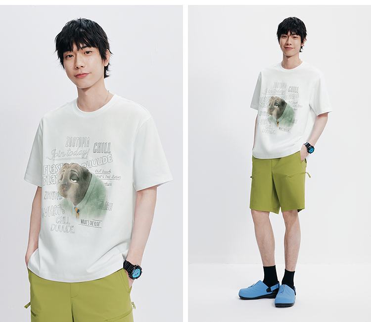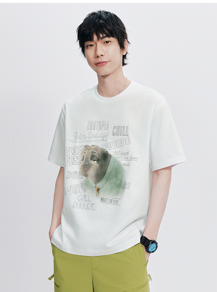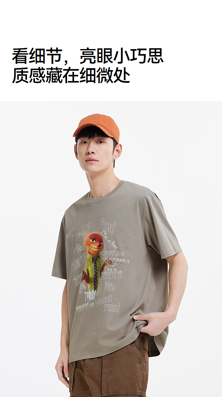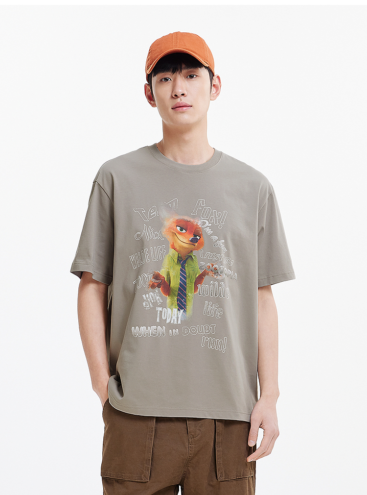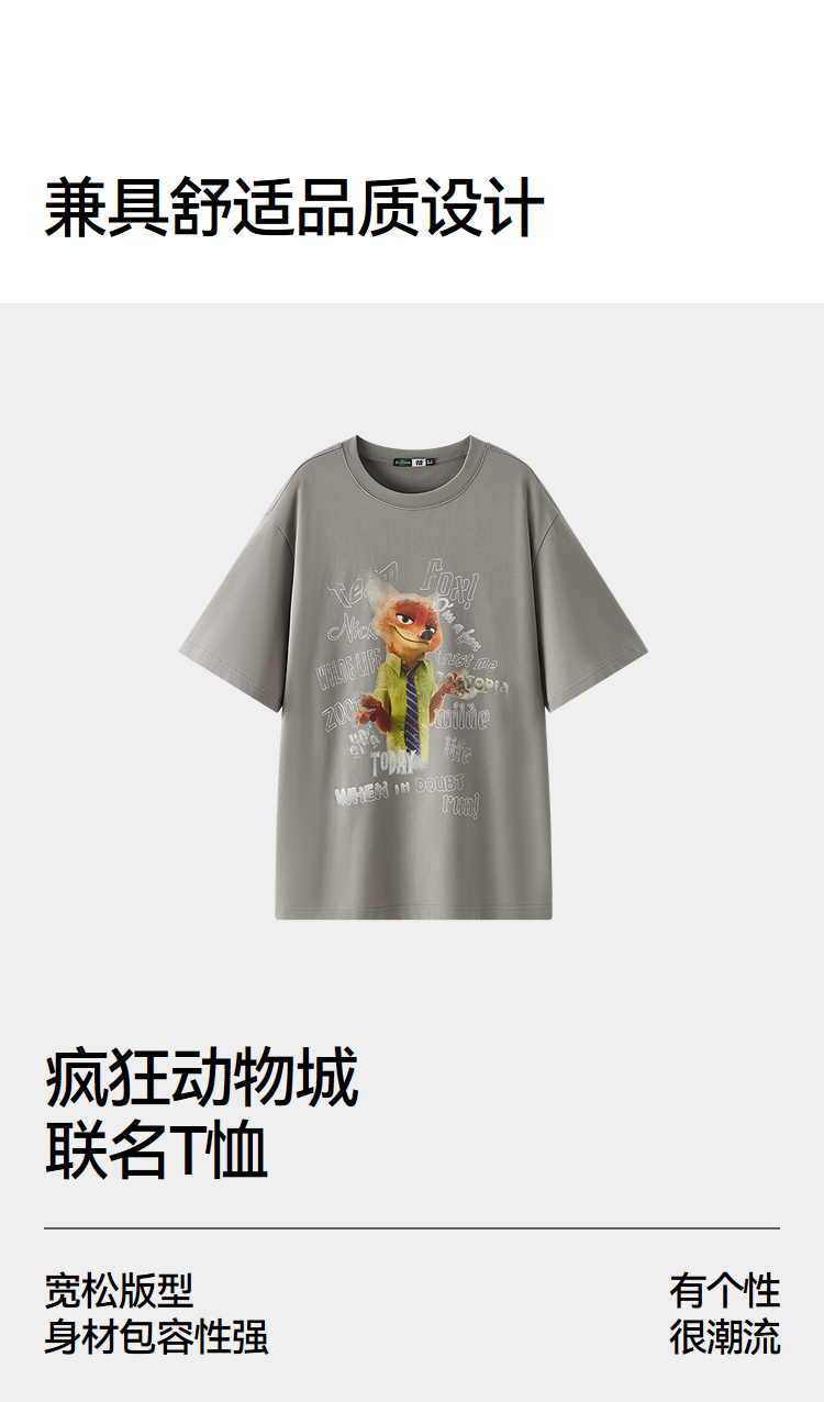 凉感T|森马疯狂动物城短袖T恤男夏季抑菌复古卡通印花宽松针织衫
