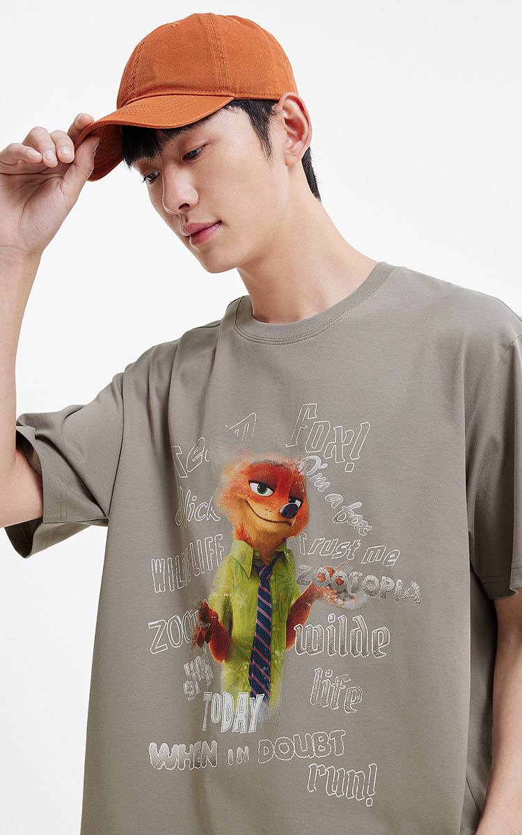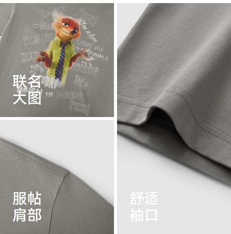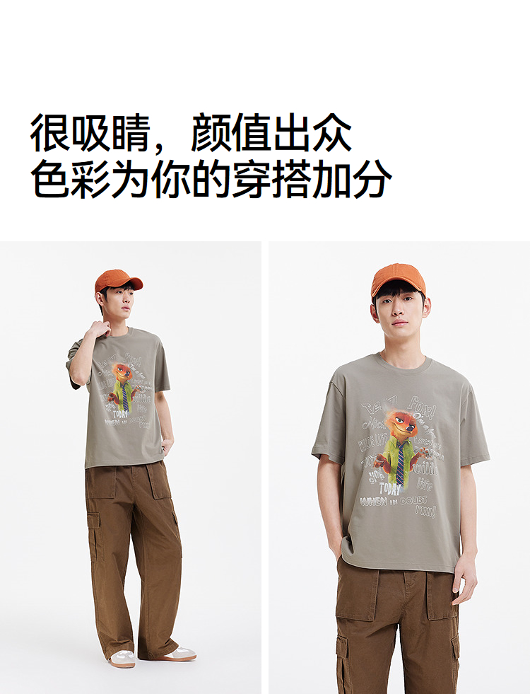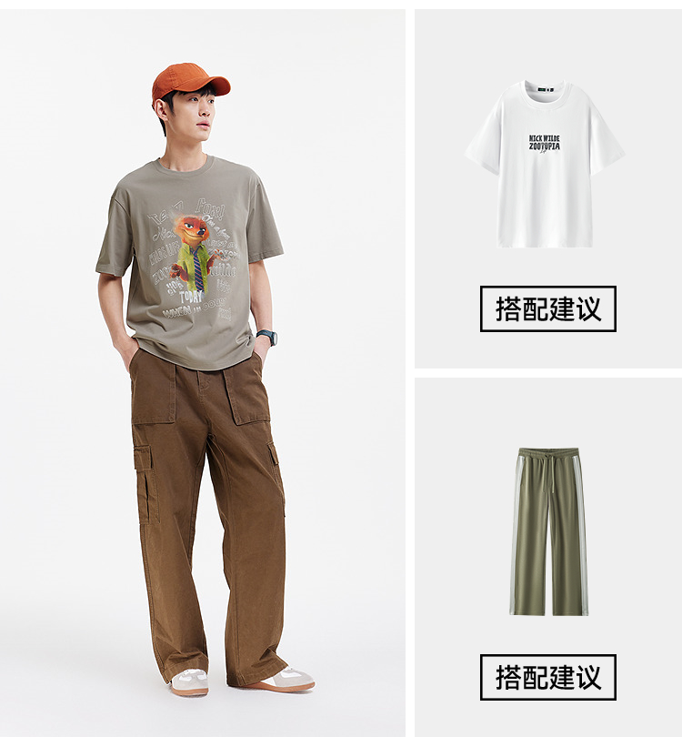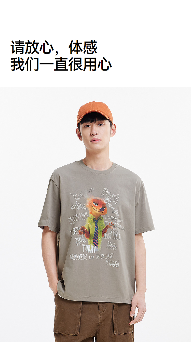 凉感T|森马疯狂动物城短袖T恤男夏季抑菌复古卡通印花宽松针织衫