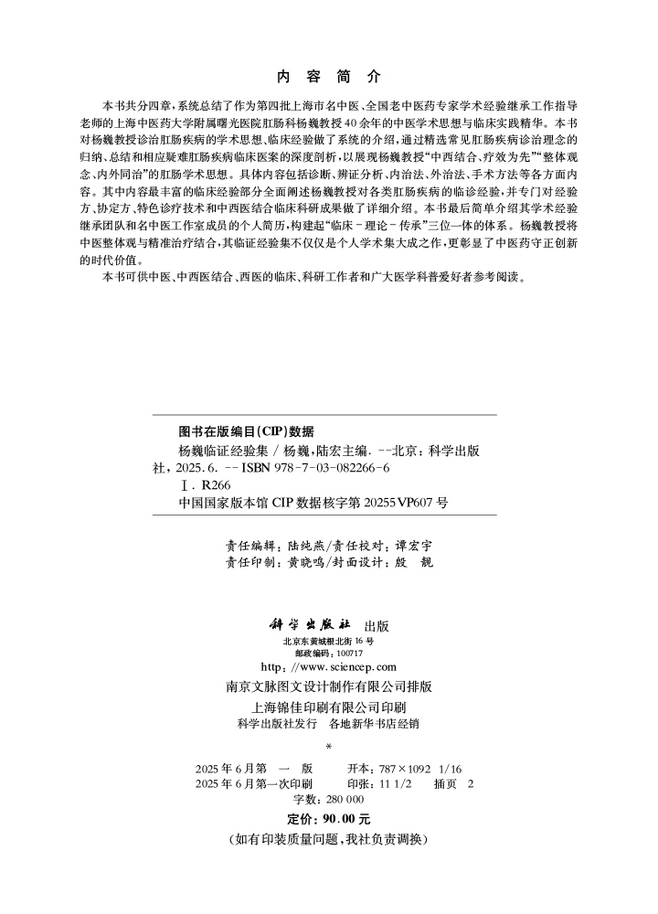 杨巍临证经验集 杨巍 陆宏 主编 各类研究生 肛肠科专科医师 中医师 也可供已迈入临床的医学生研读 9787030822666科学出版社