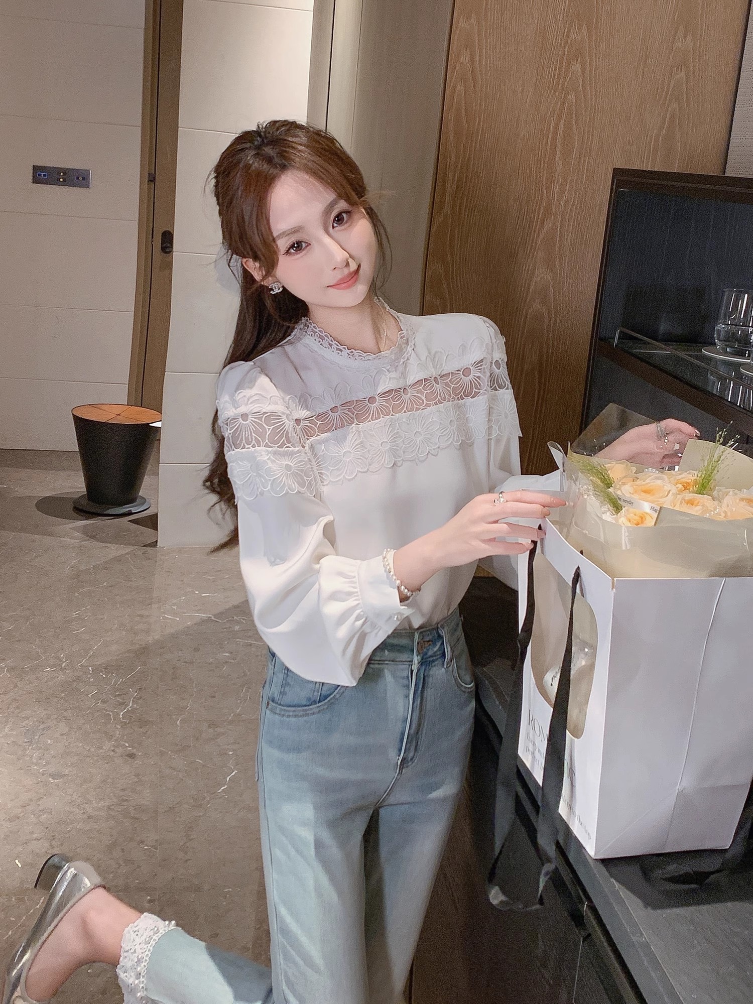 张心子【织梦浪漫】春款圆领法式蕾丝拼接衬衫上衣 U2502033
