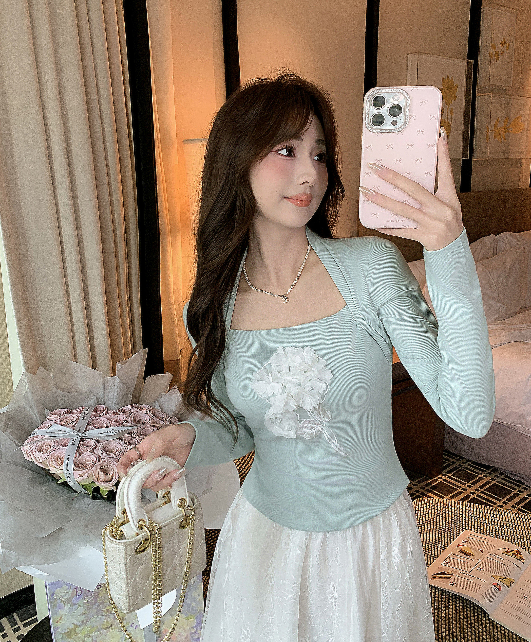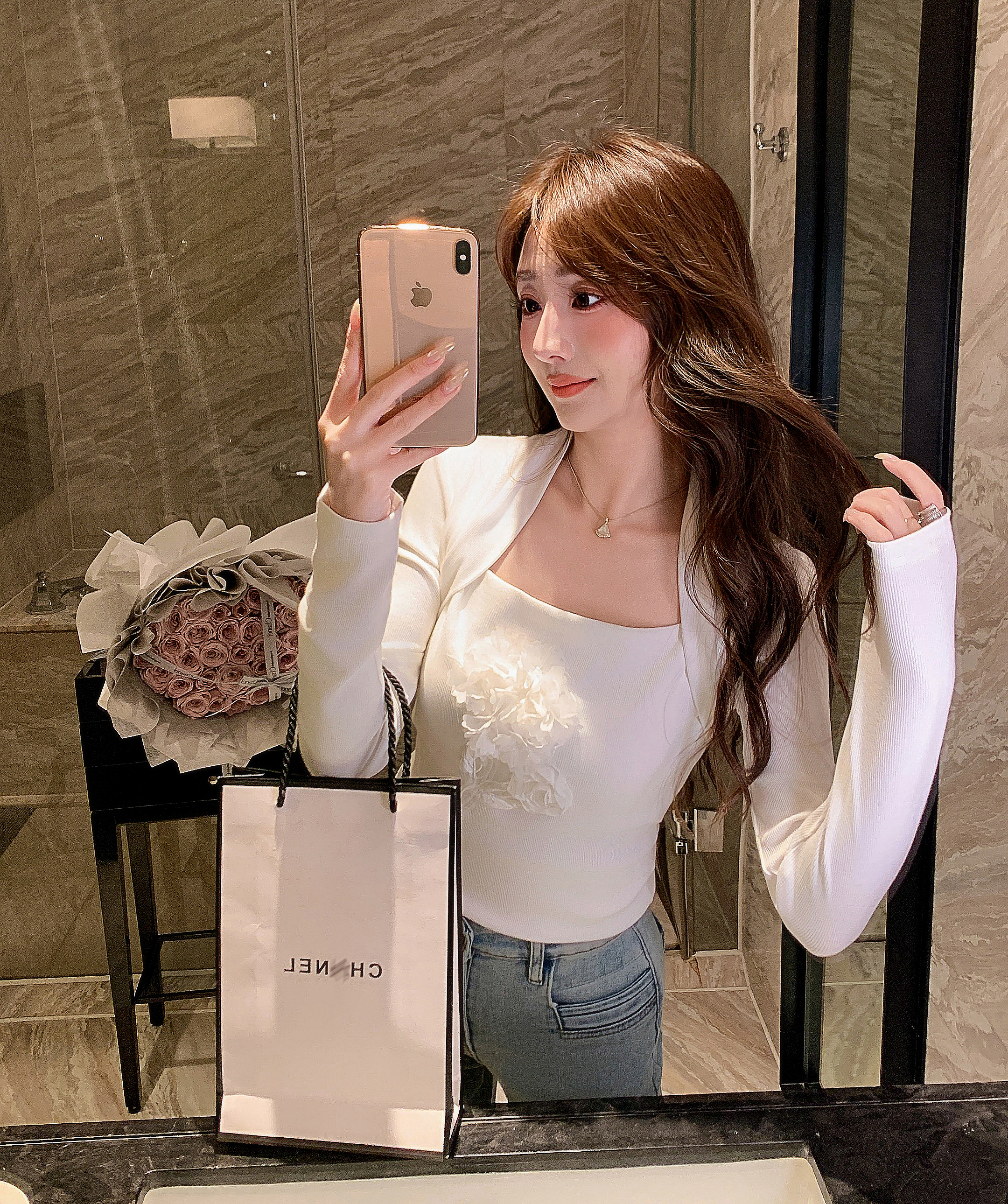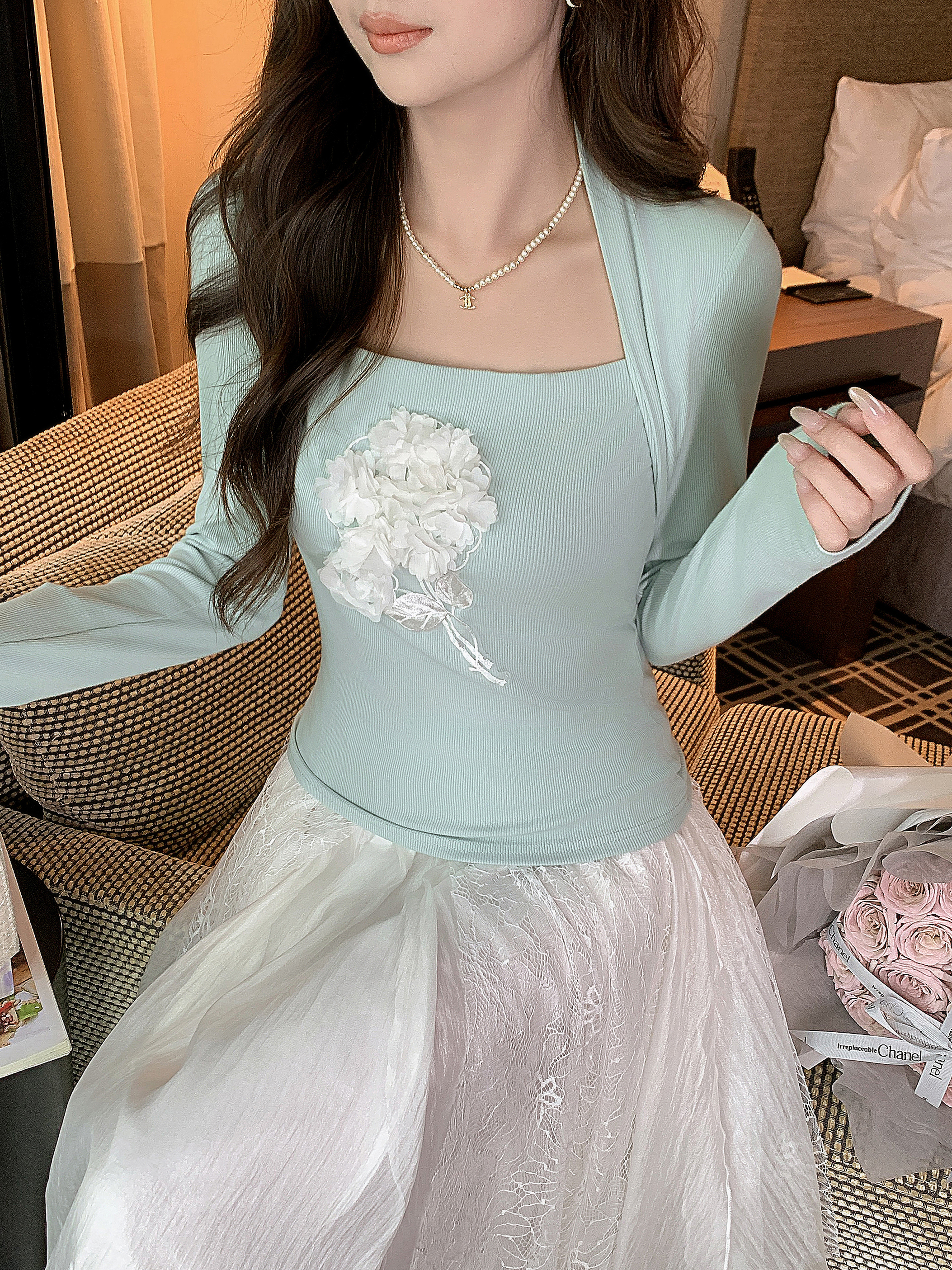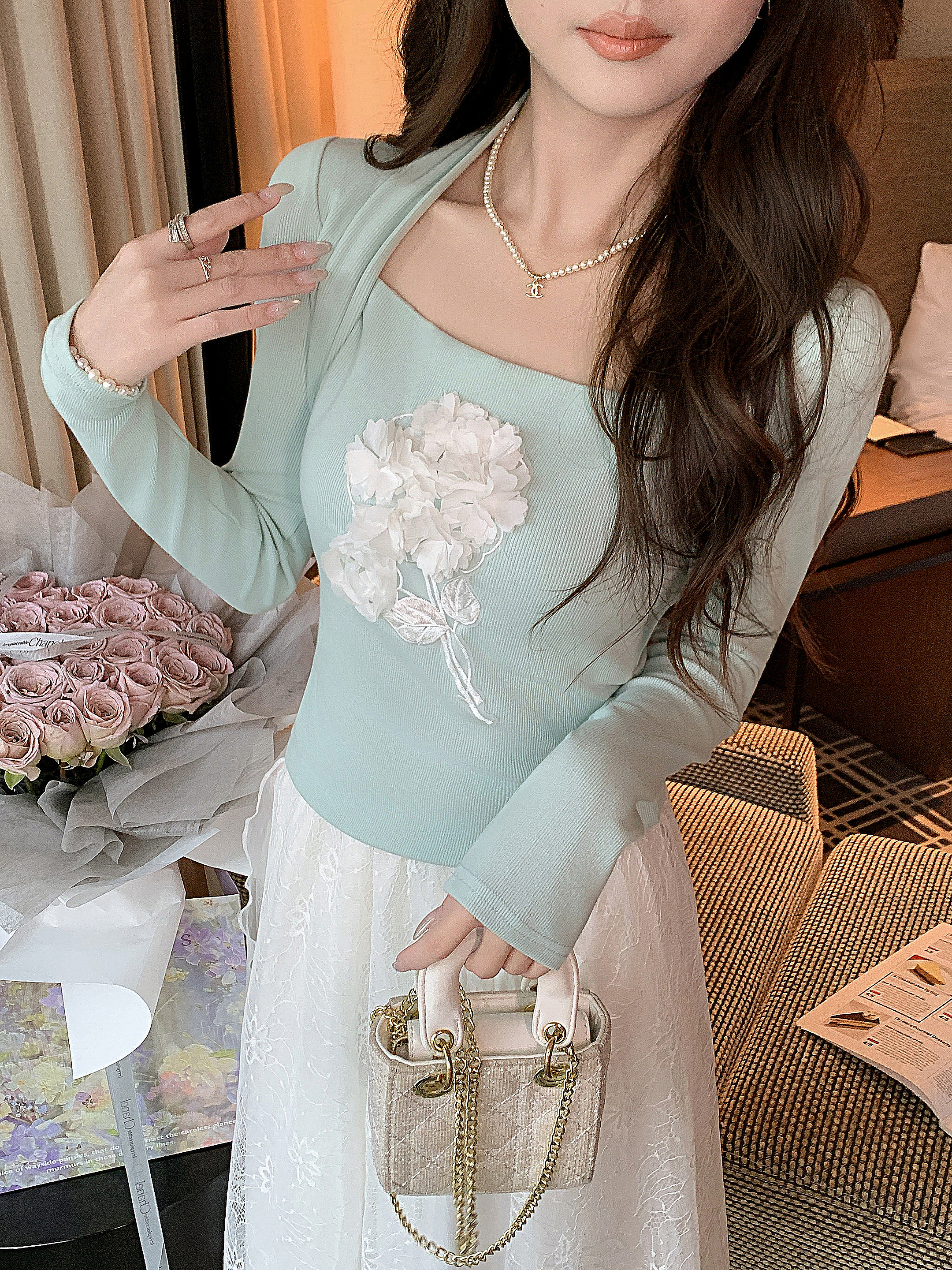 张心子【花影轻喃】设计感假两件修身显瘦T恤女长袖春季新款上衣 U2602065