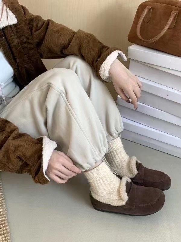 【GZ】无忧购‘清仓福利’ 外穿保暖加绒法式复古玛丽珍平底毛毛鞋X11-08(截单后3-5天发货)