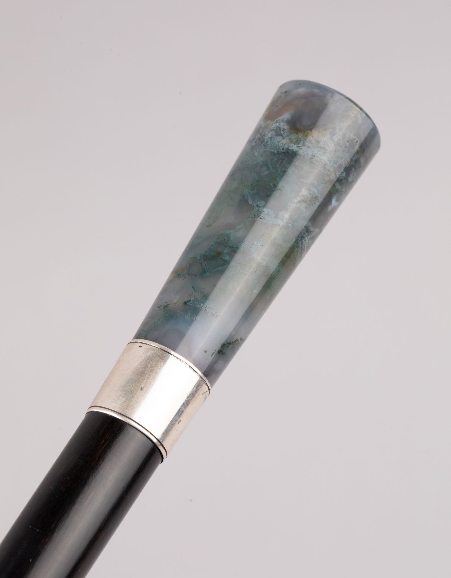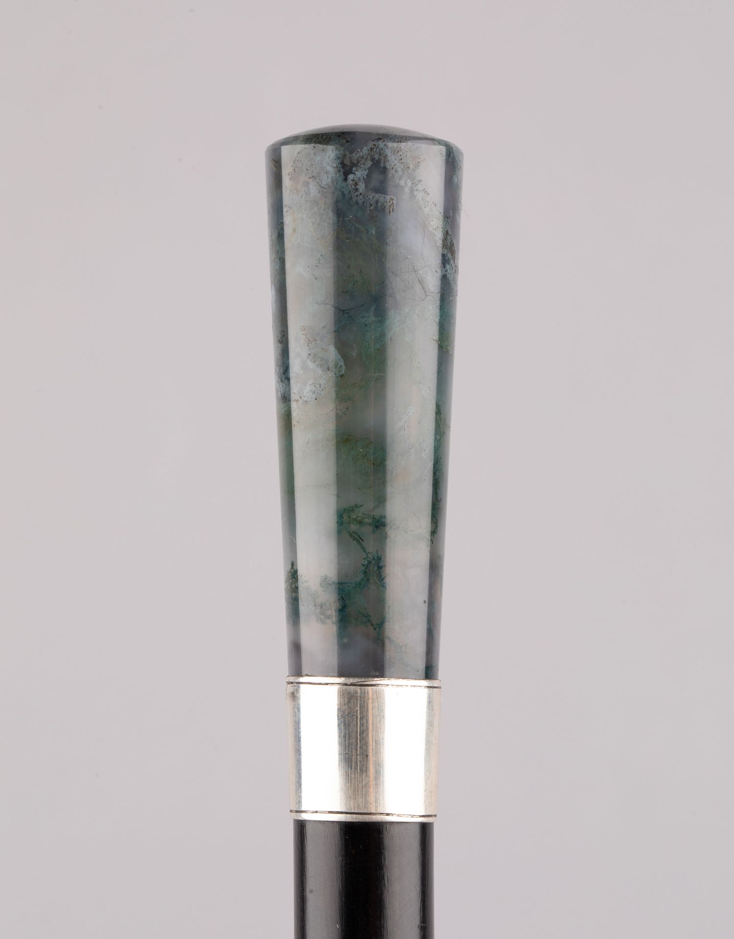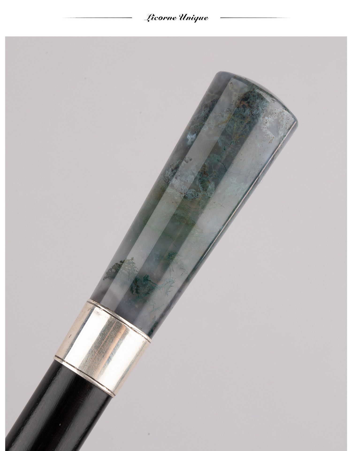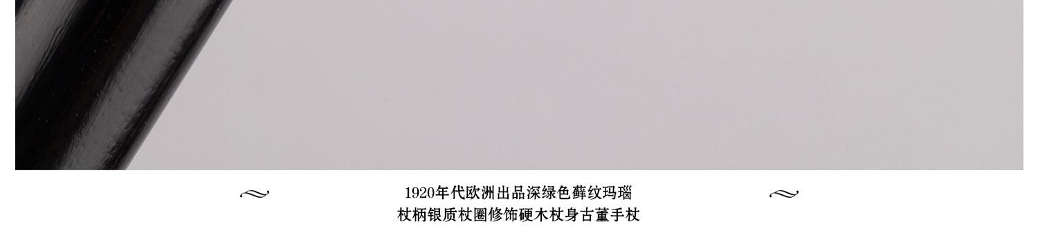 独角鹿西洋古董欧洲深绿色藓纹玛瑙杖柄银质杖圈硬木杖身古董手杖