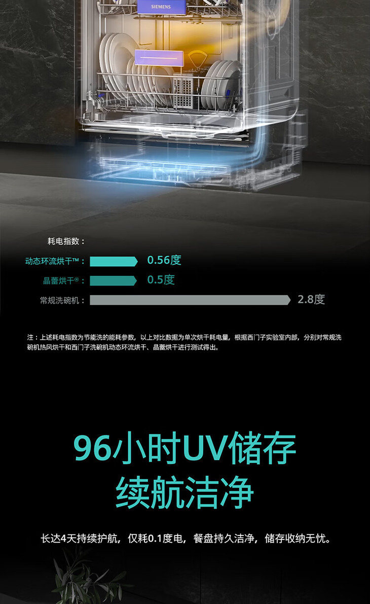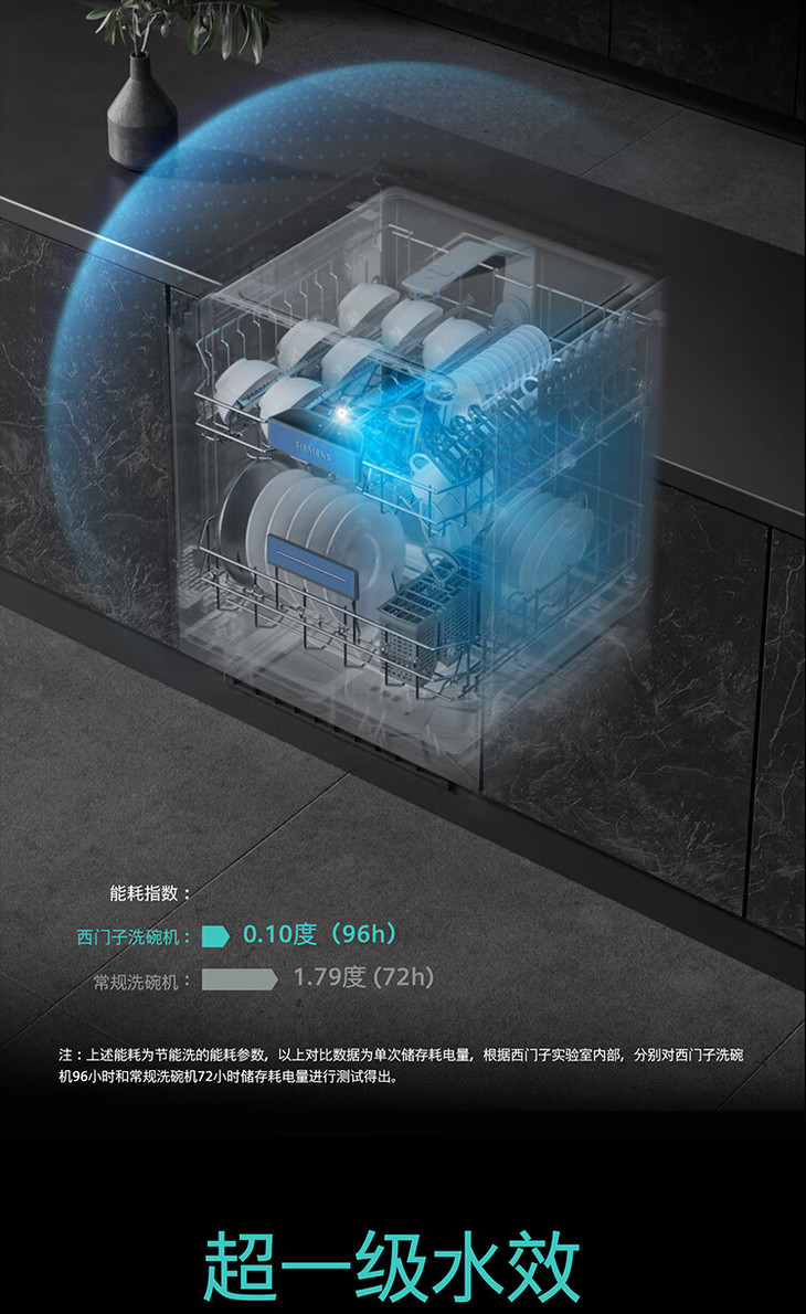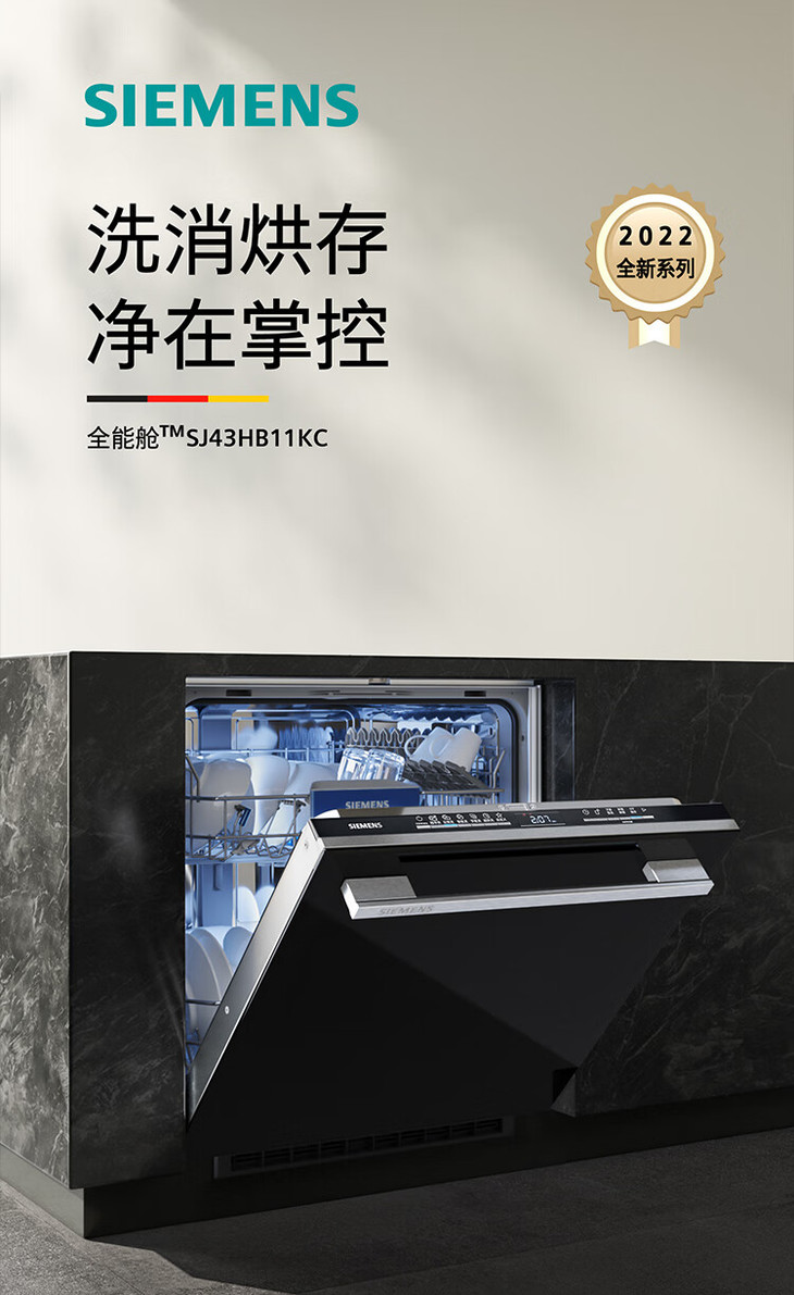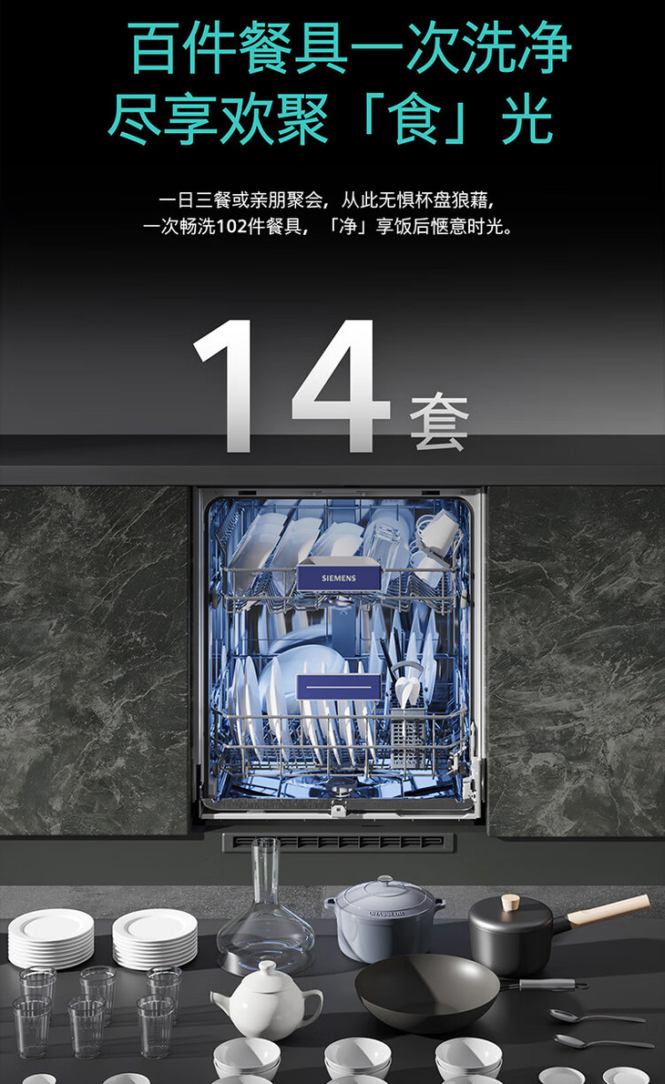 西门子(510122 ) 14套家用厨房嵌入式全能舱洗碗机SJ43HB11KC 96小时UV存 动态环流烘干