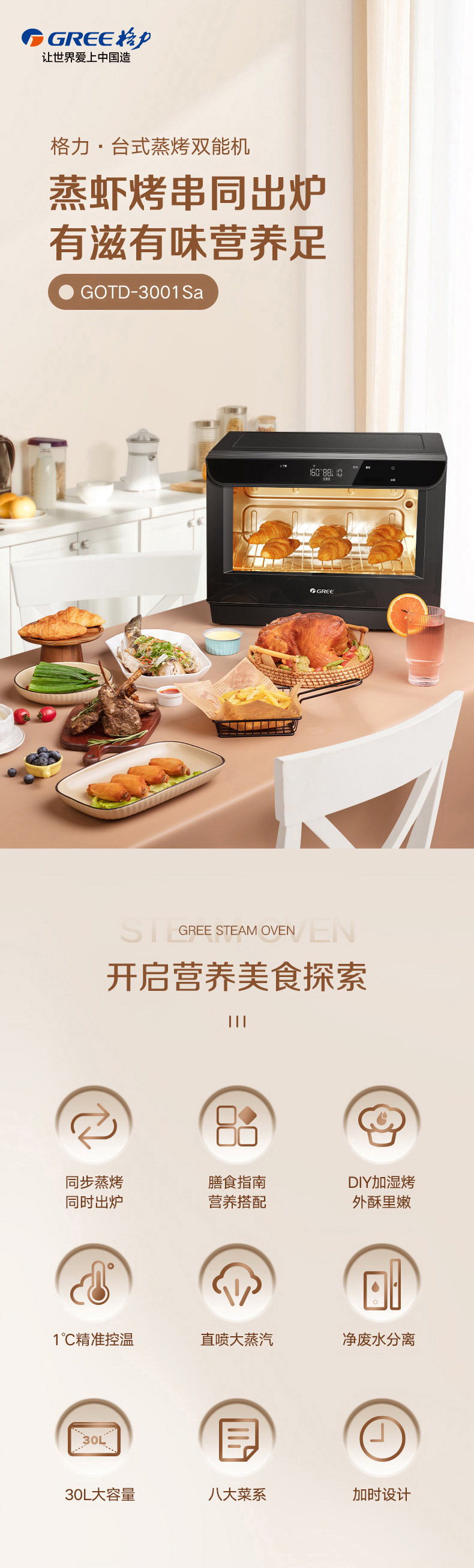 格力·蒸烤双能机 台上式 GOTD-3001Sa 黑色