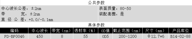 BP450/8k OD5 @200-1200 T>55% φ12.7*6带通滤光片 (带套圈)