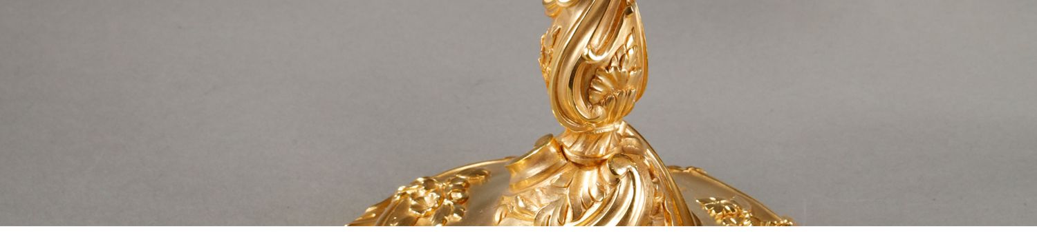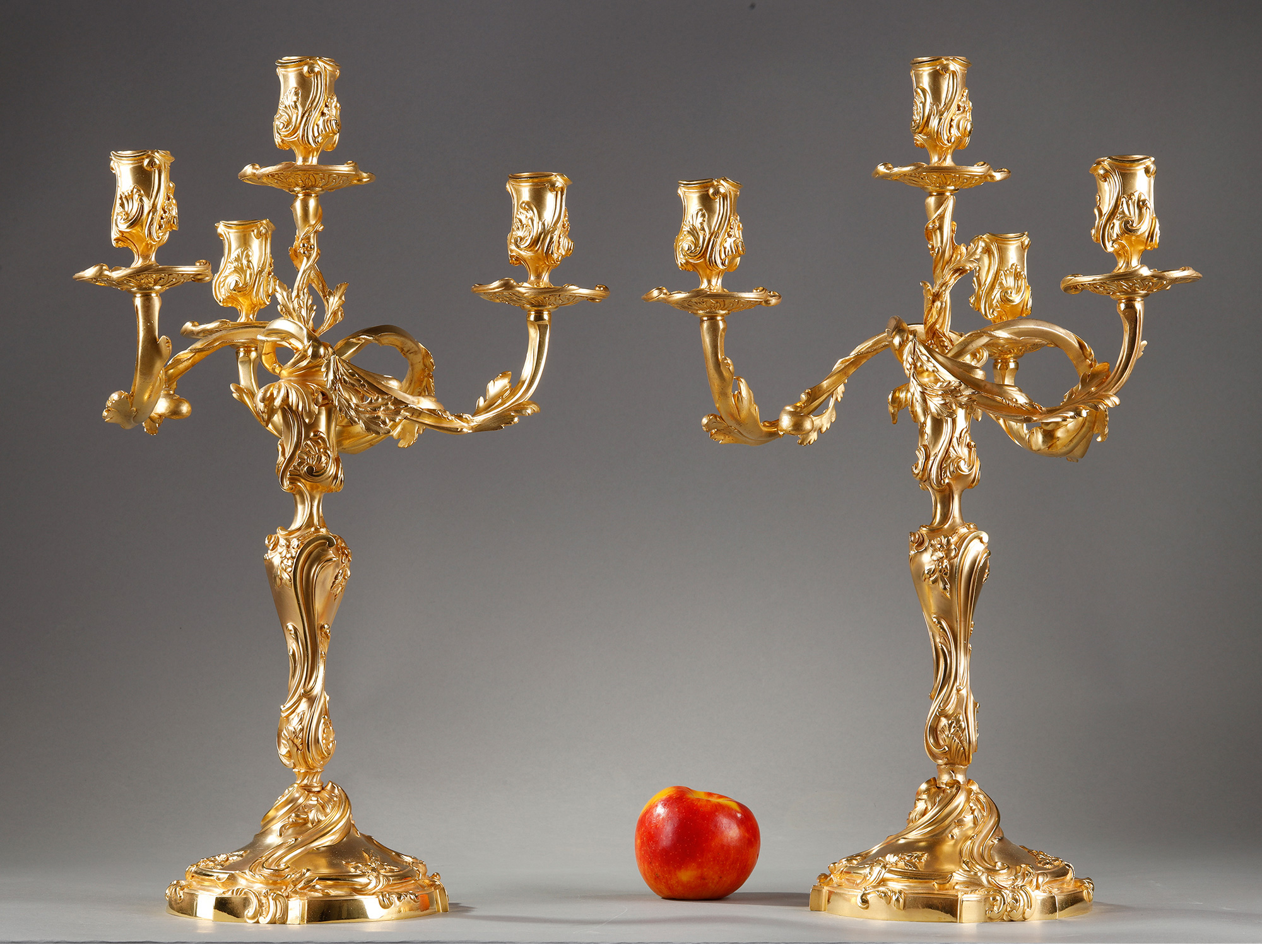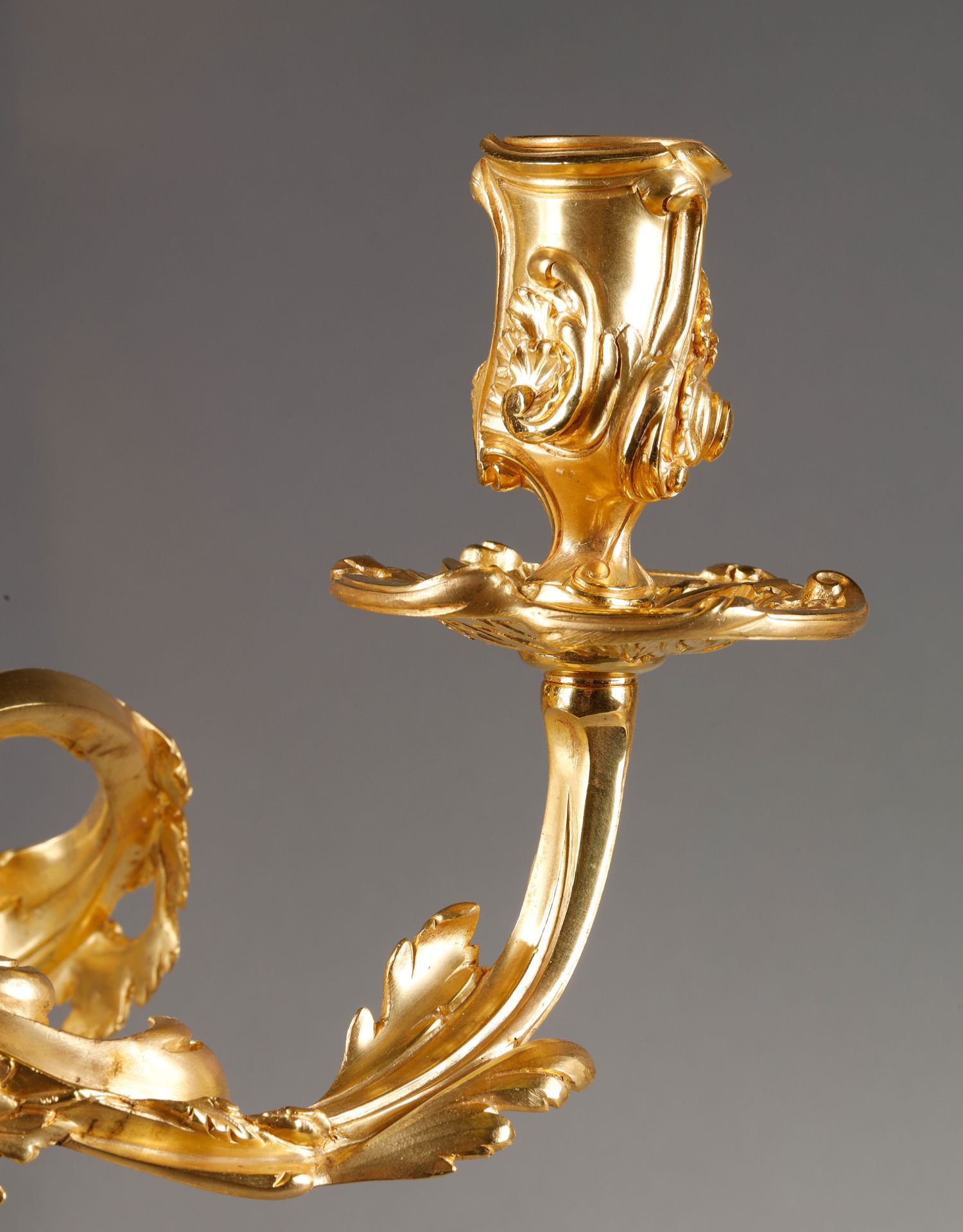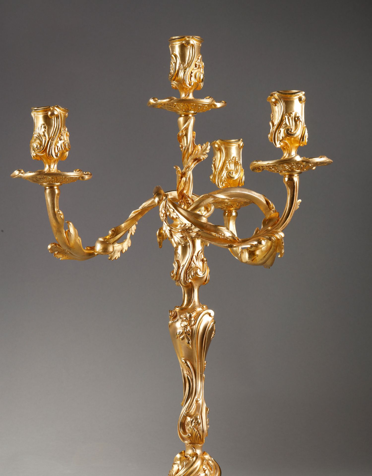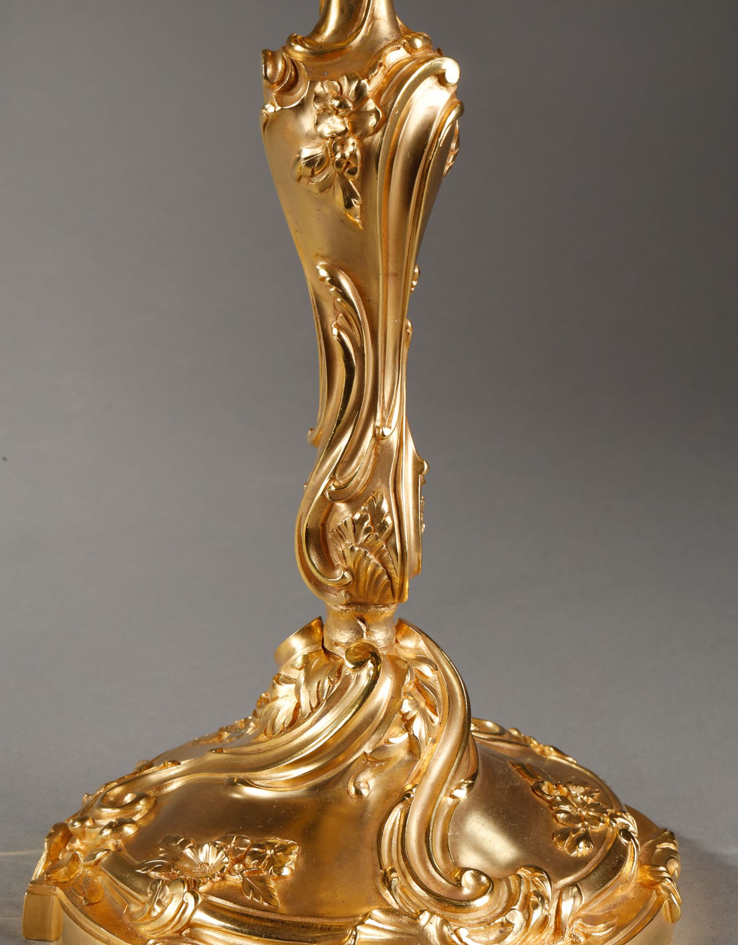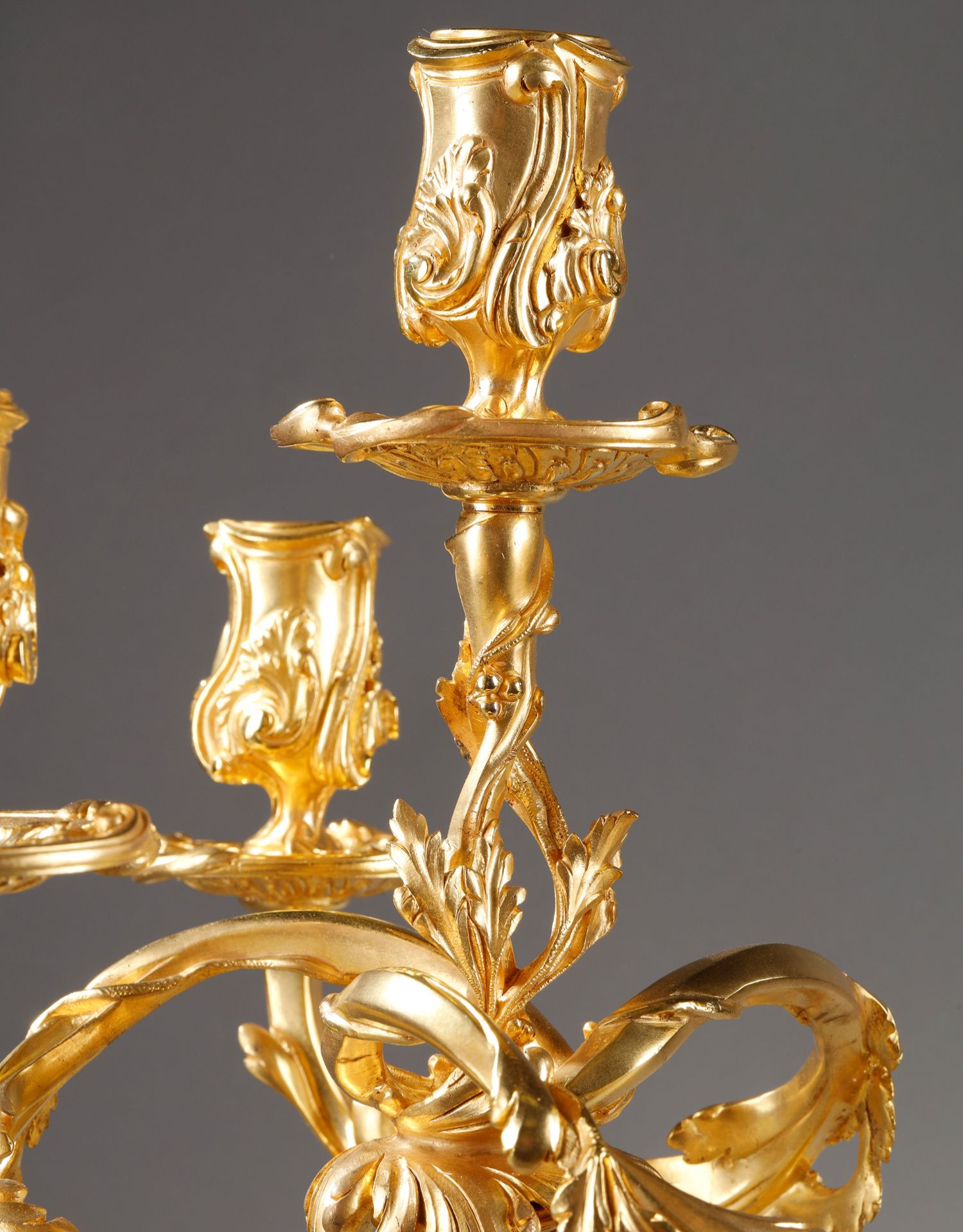 独角鹿西洋古董Henri Vian工坊路易十五风铜鎏金四枝头烛台一对