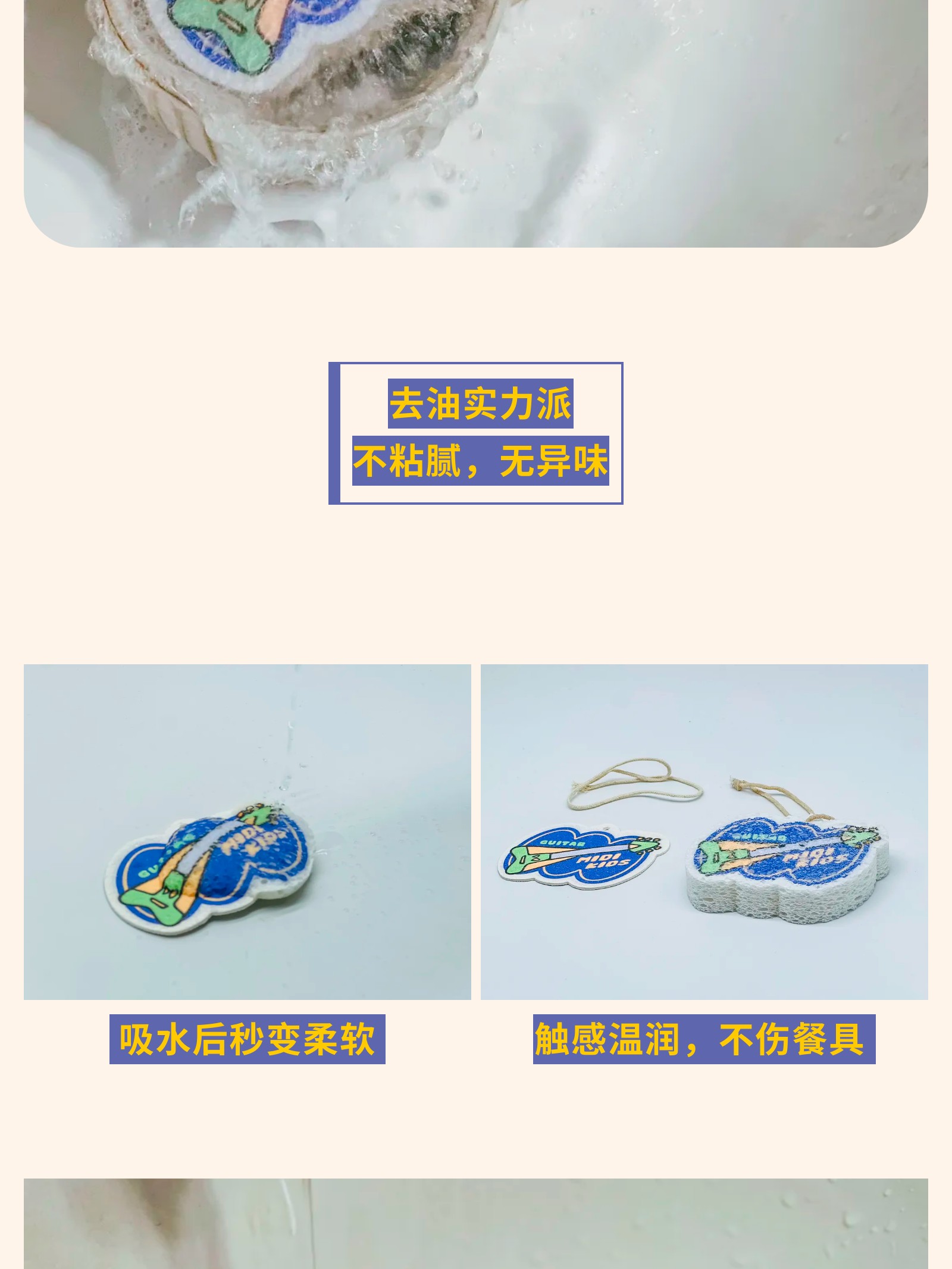 孩迷天然木浆棉电吉他百洁擦,刷碗沐浴厨房百洁布