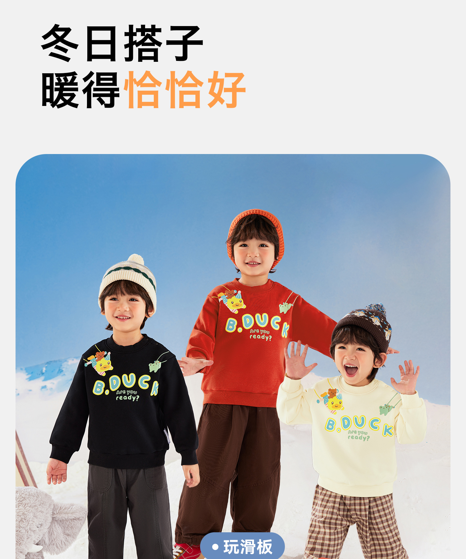 【抗菌加绒】B.Duck小黄鸭童装冬季圆领卫衣90-130 BF5631061