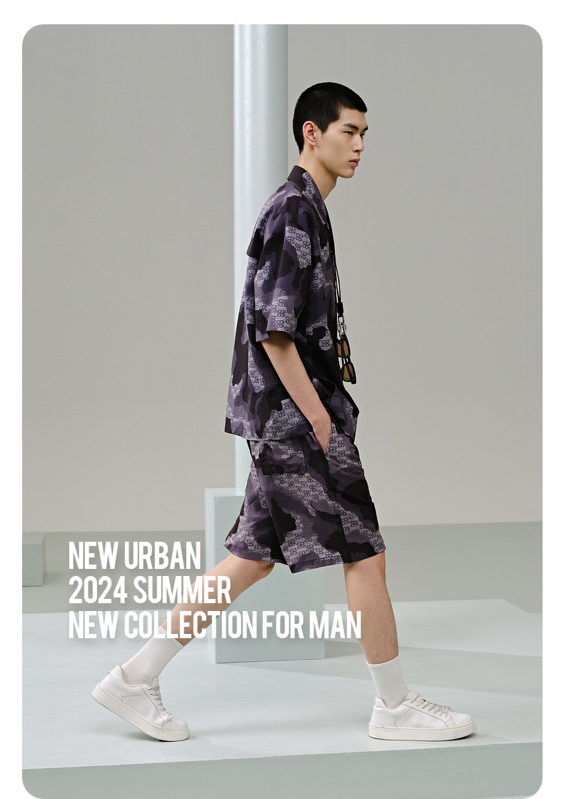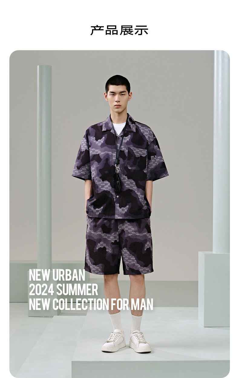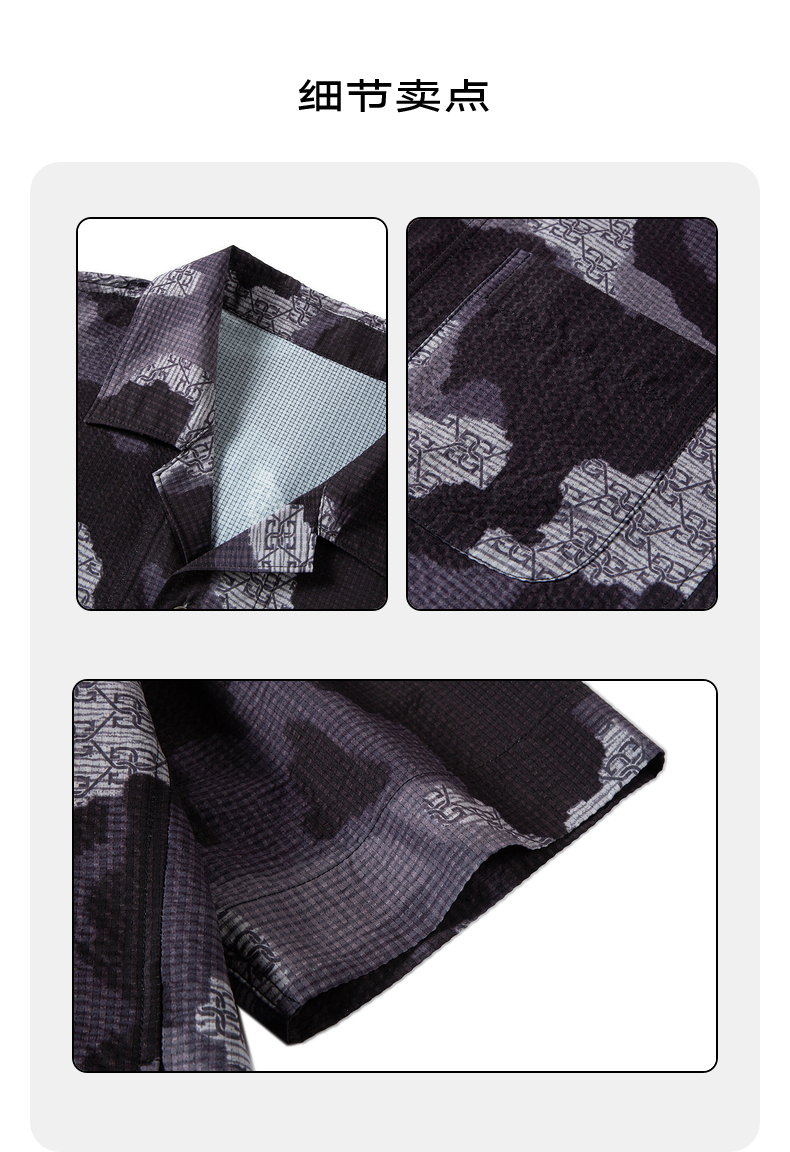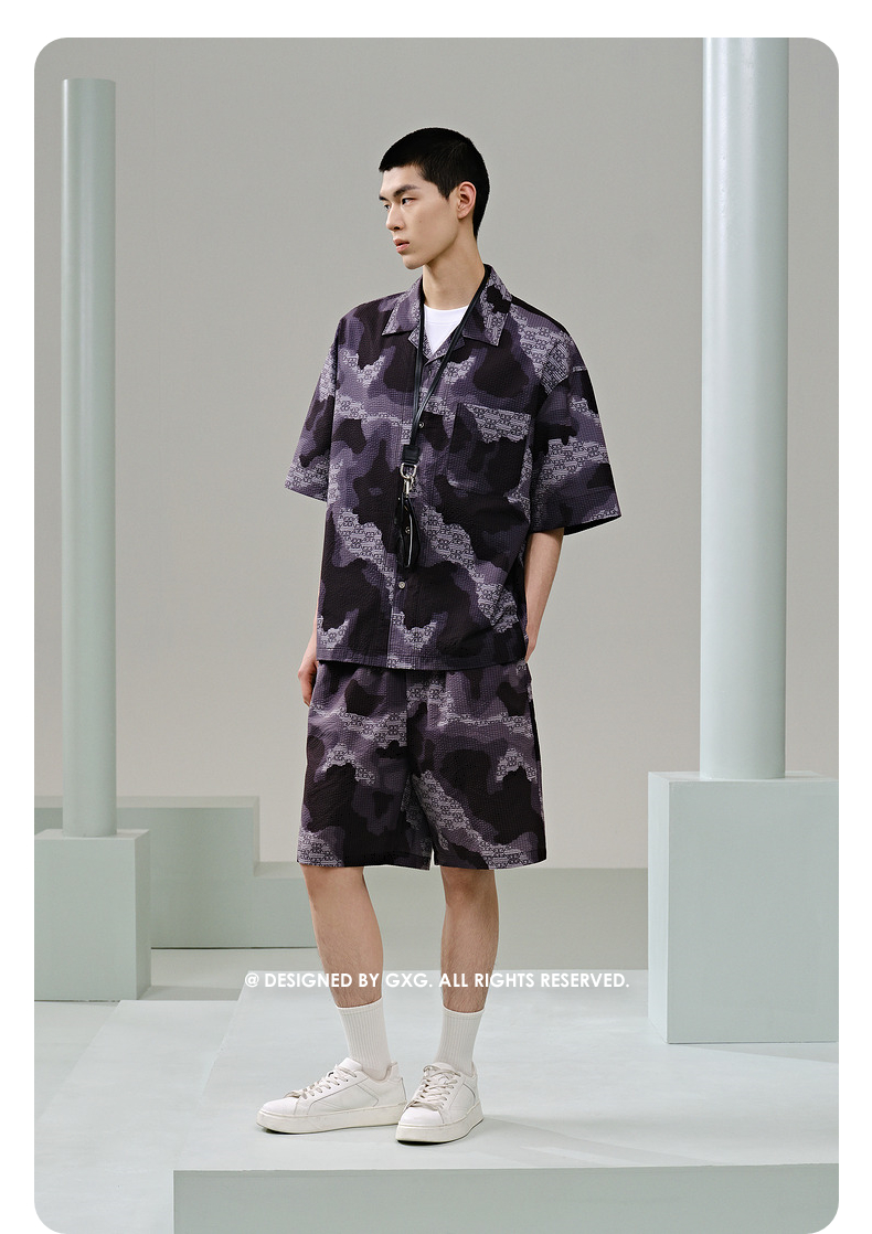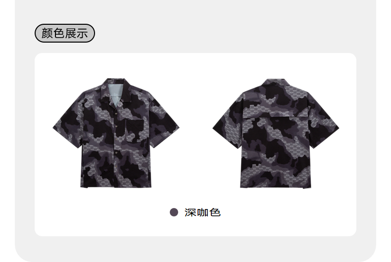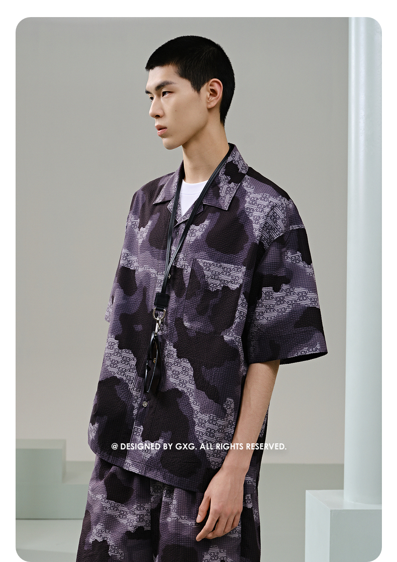 GXG男装 深咖色迷彩印花短袖衬衫 时尚潮流夏季热卖印花衬衫G24X232025