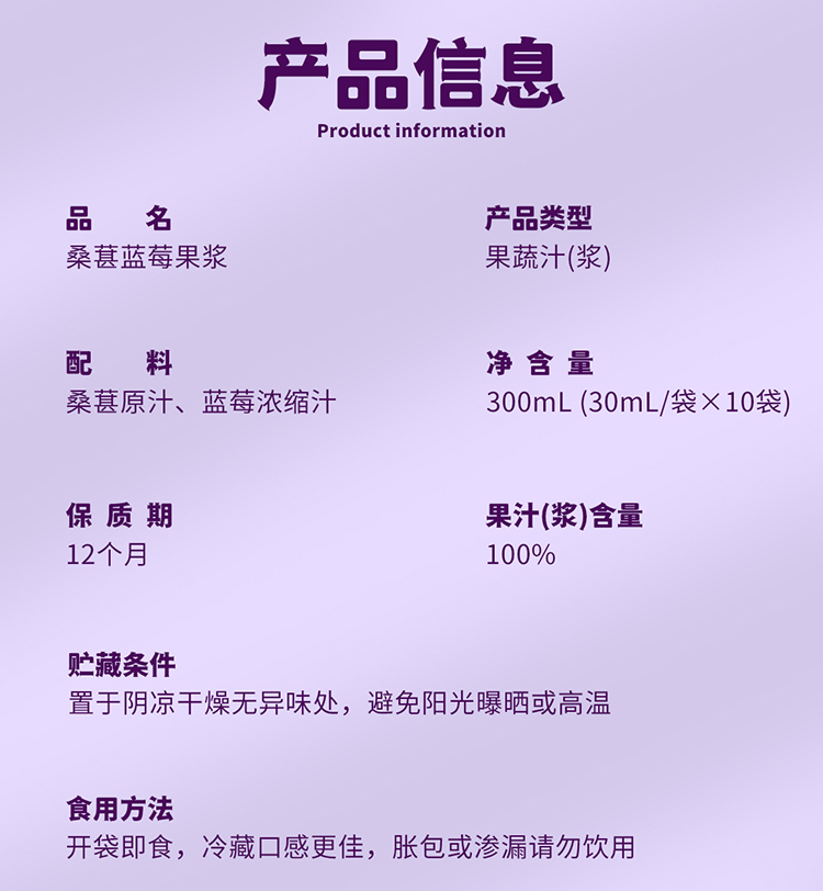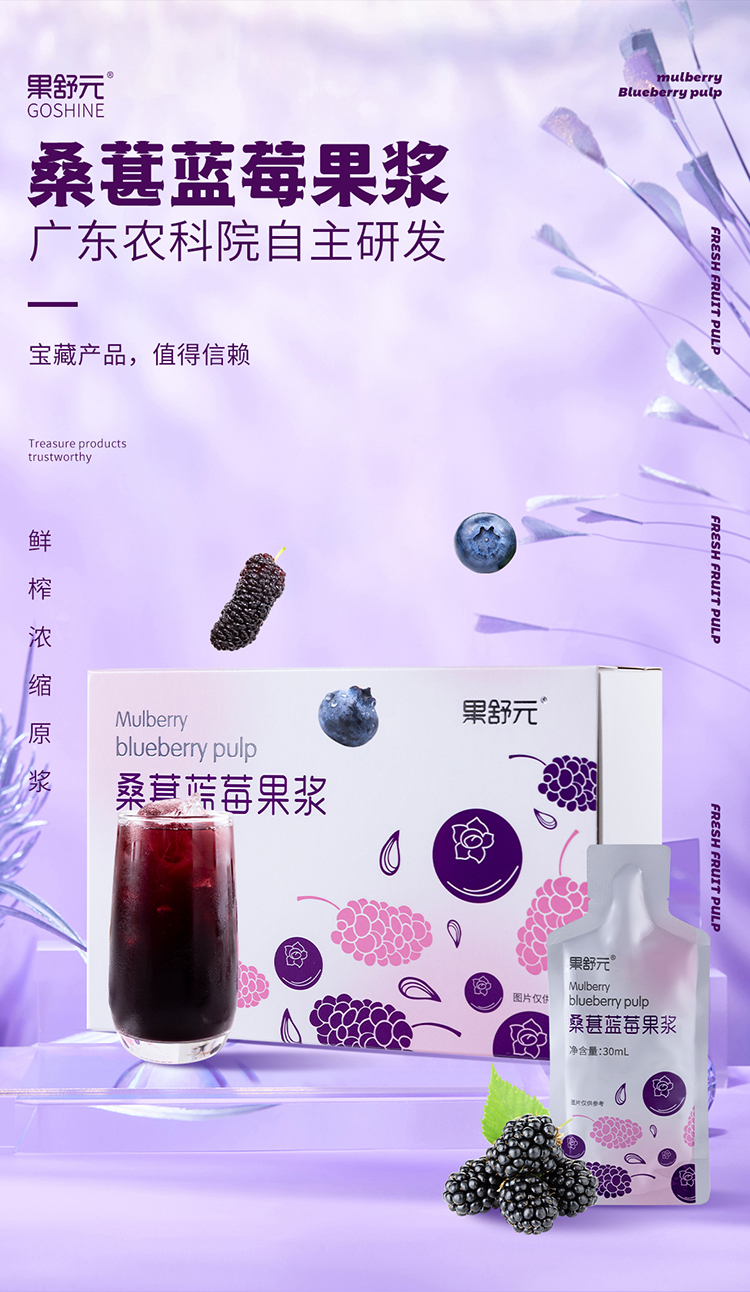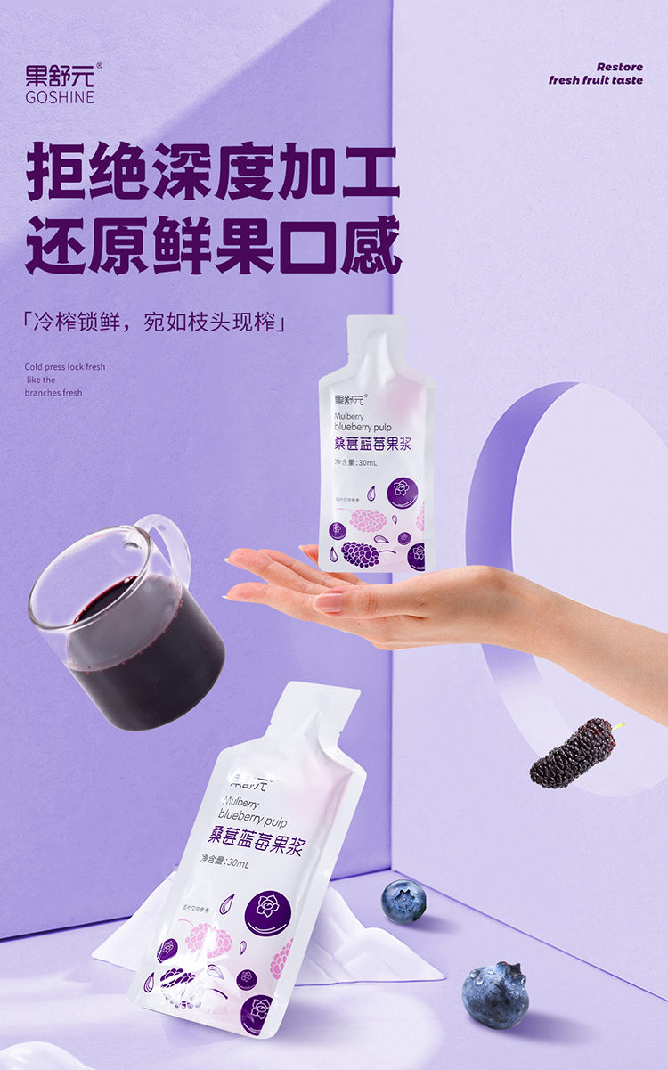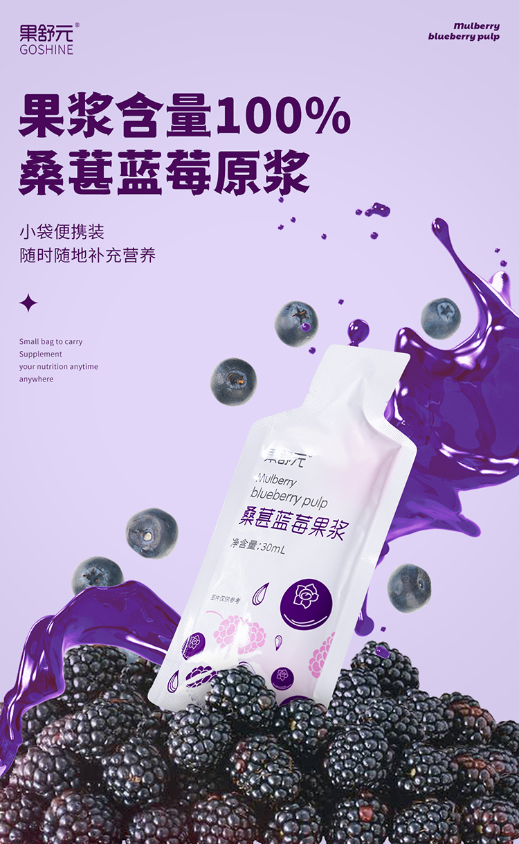 果舒元 100%桑葚蓝莓果浆2盒(套装) 30ml*10袋/盒*2盒