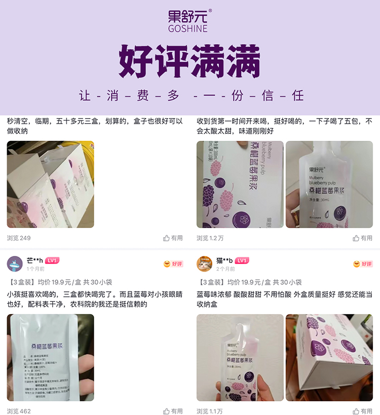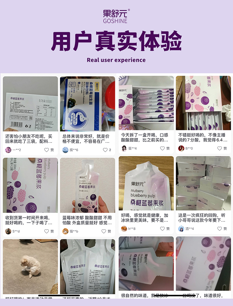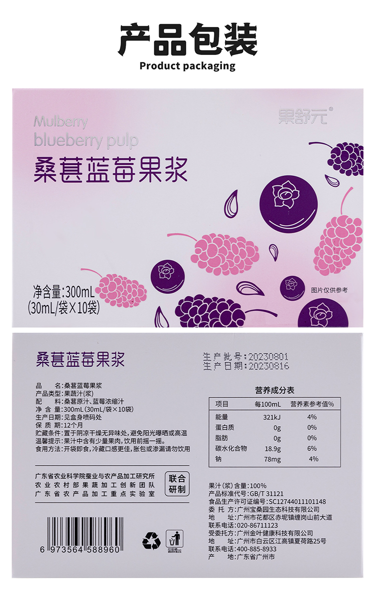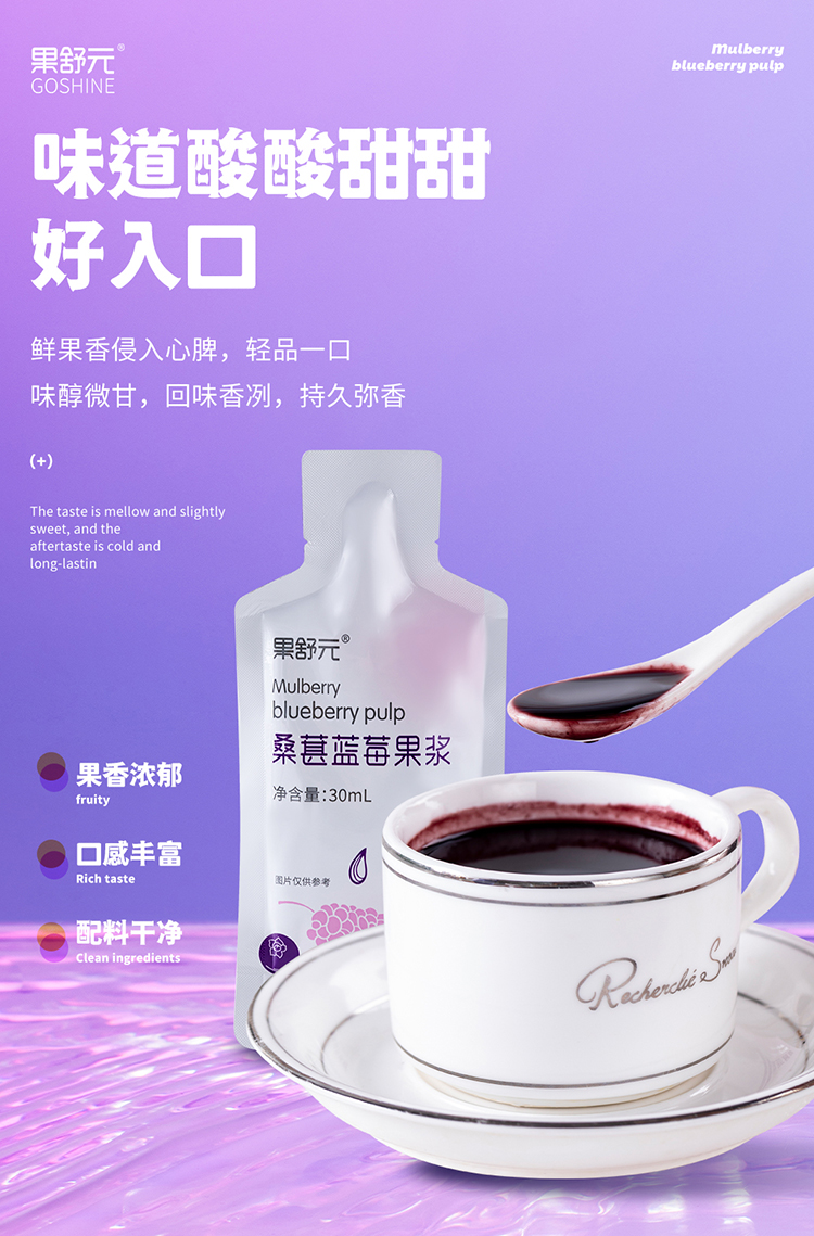 果舒元 100%桑葚蓝莓果浆2盒(套装) 30ml*10袋/盒*2盒
