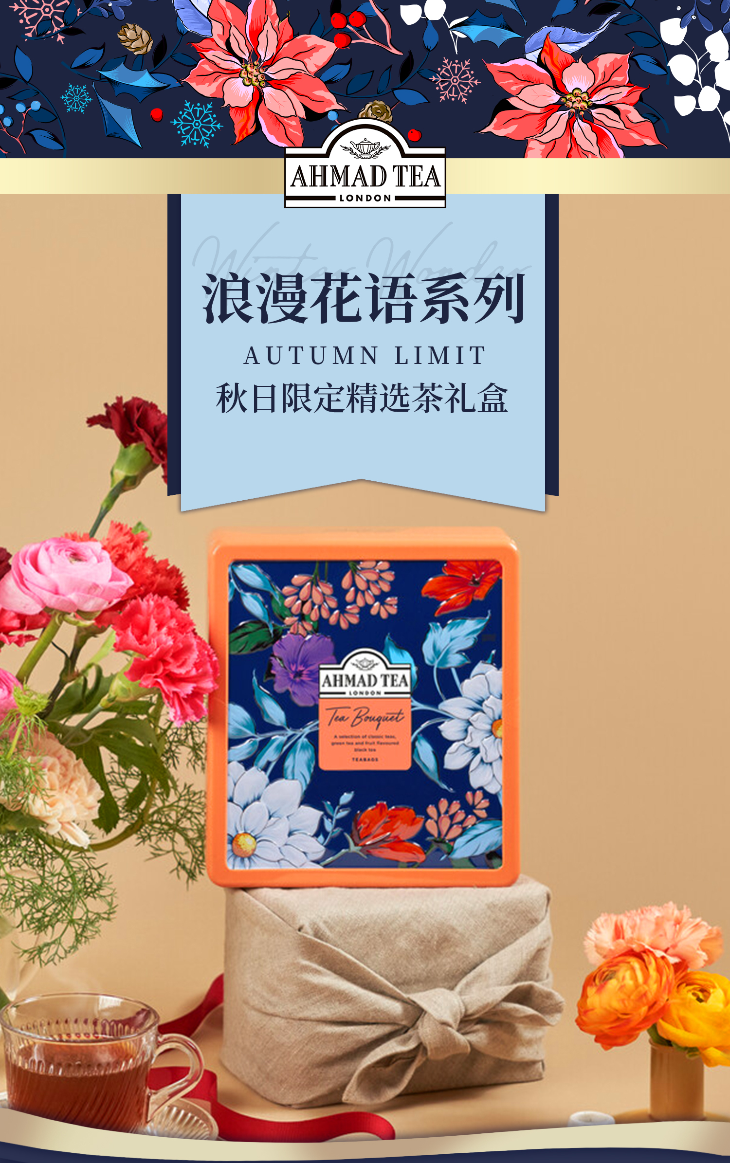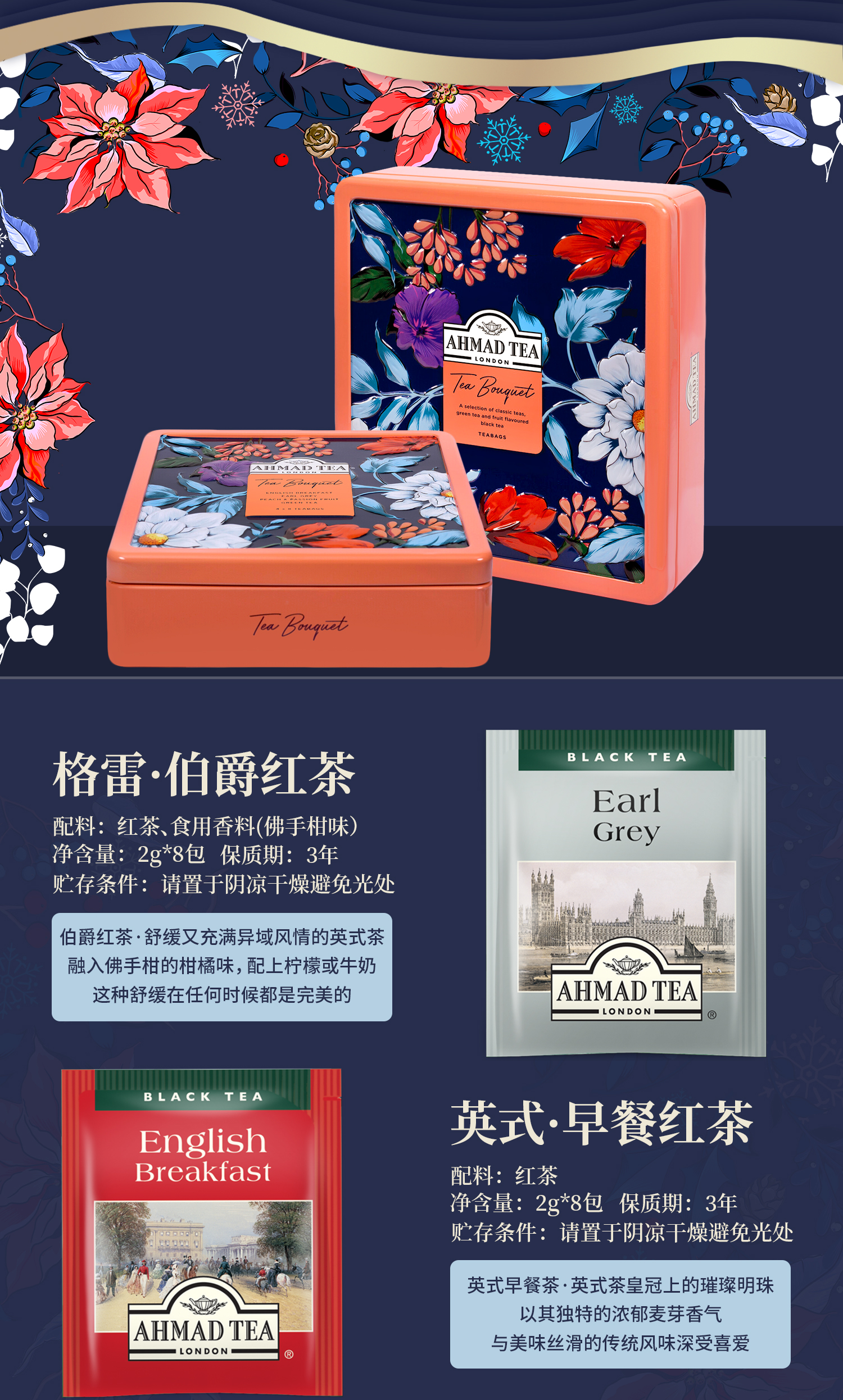 【英式优雅漫生活】英国亚曼茶 浪漫花语精选茶礼盒铁盒 2g/包 四款各8包(伯爵红茶+早餐红茶+英式绿茶+桃子百香果果茶)送礼袋