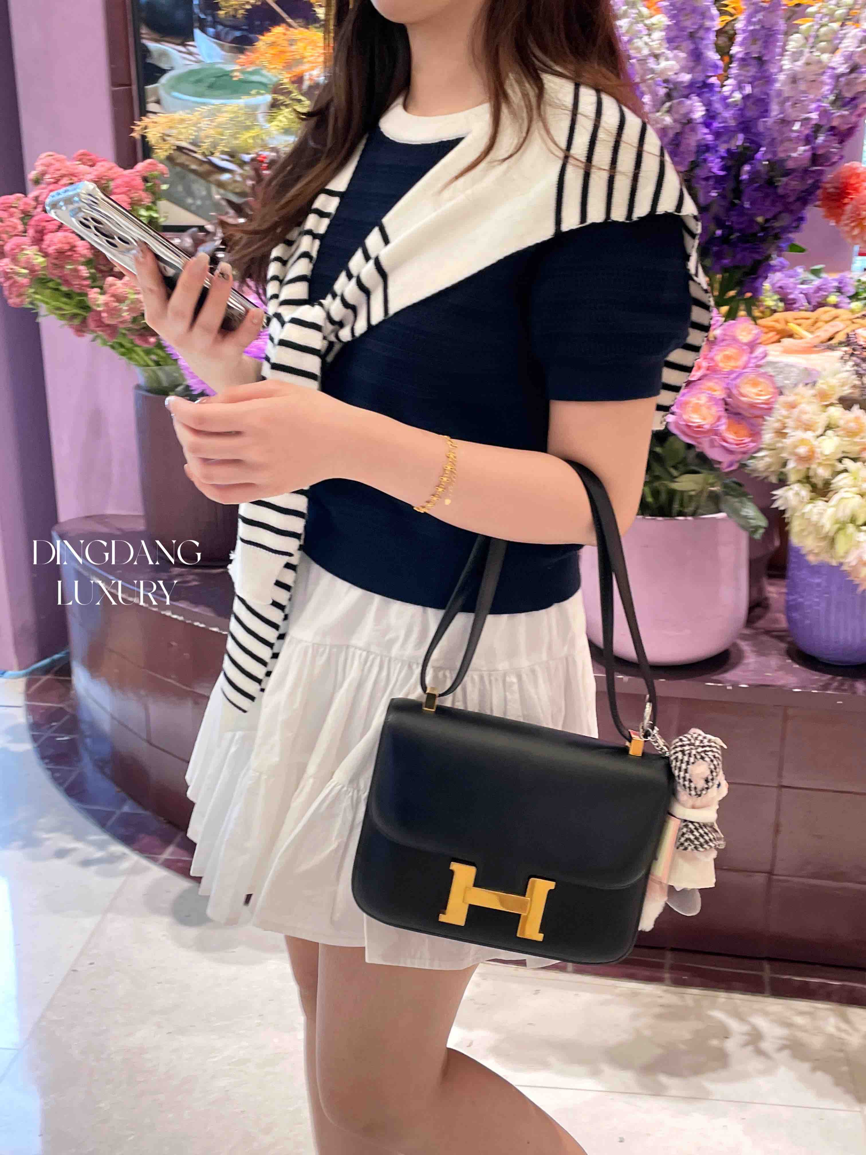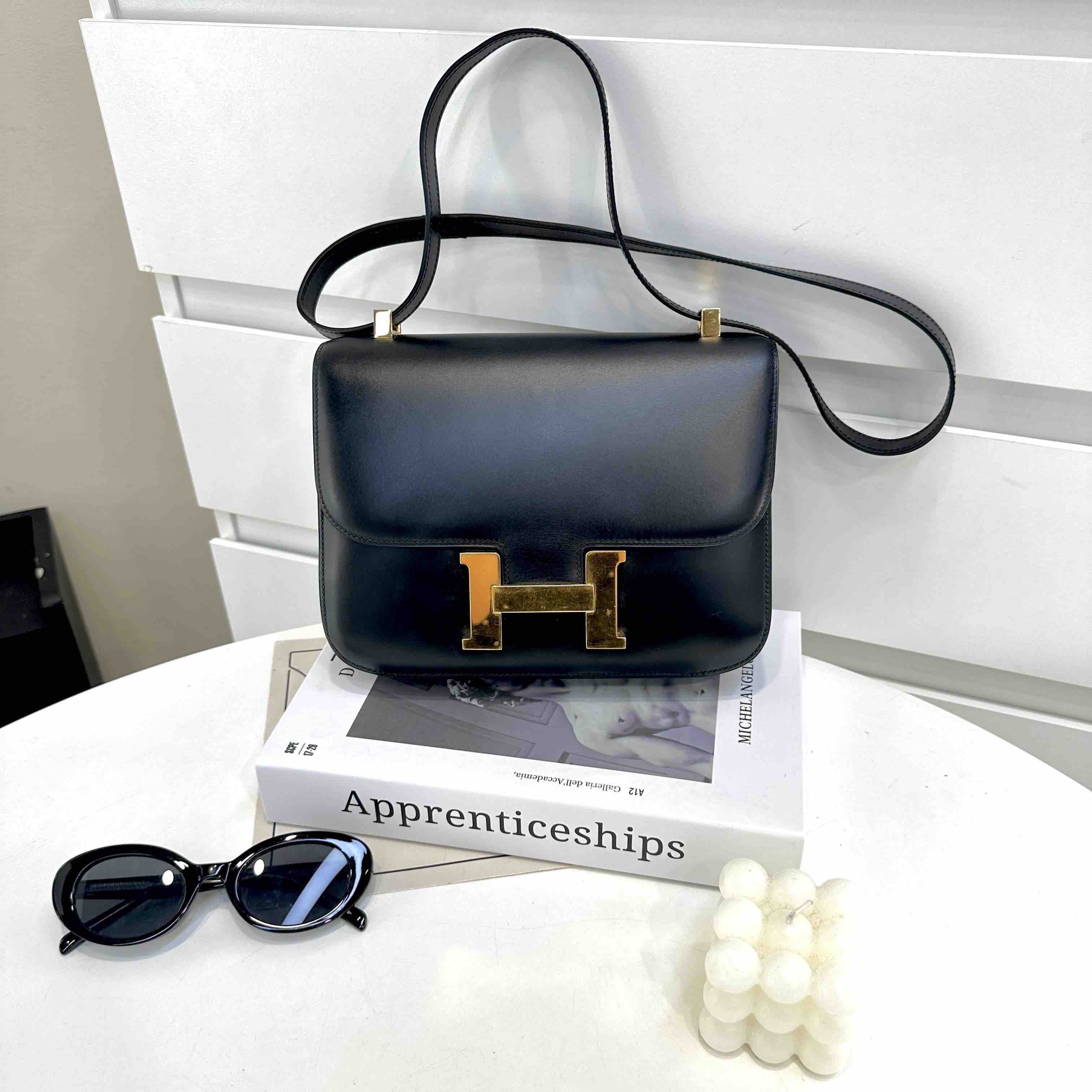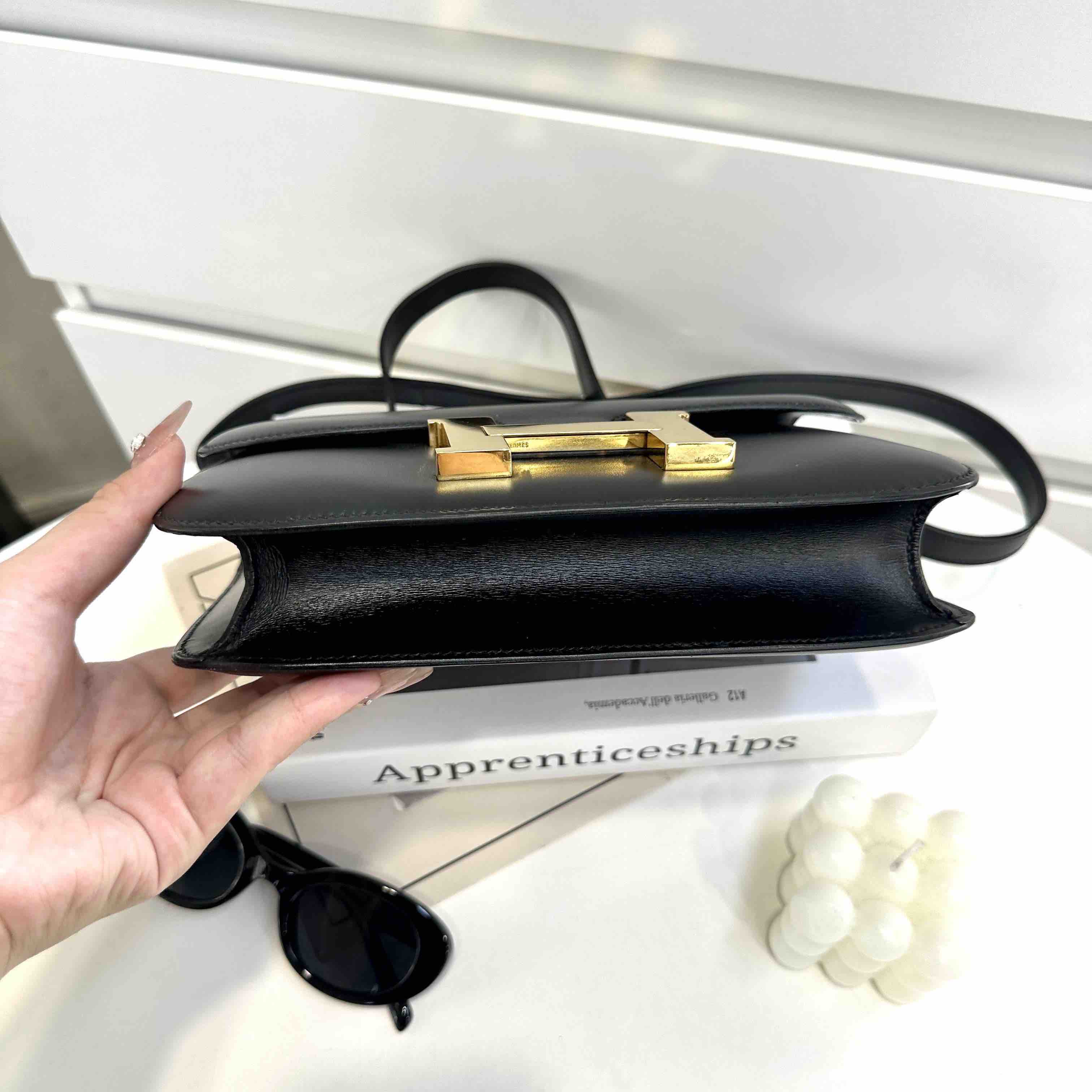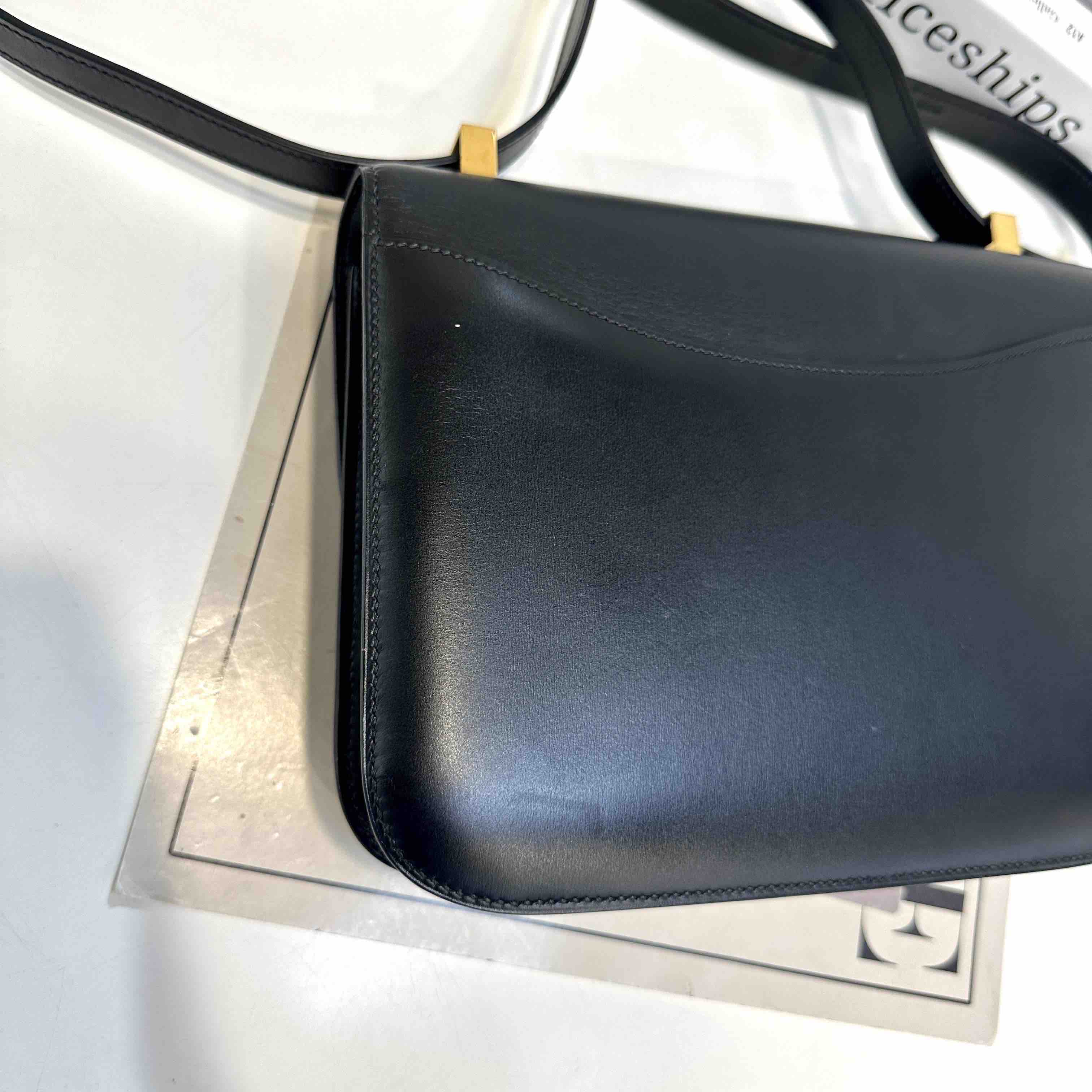 【商品详情】正品二手 爱马仕 中古 康康24 黑金 box牛皮 翻盖包🎭95新 24×19 圆圈J刻 配件:肩带。肩带后换,五金与内翻盖正常使用痕迹 包身轻微使用痕迹 内里干净
