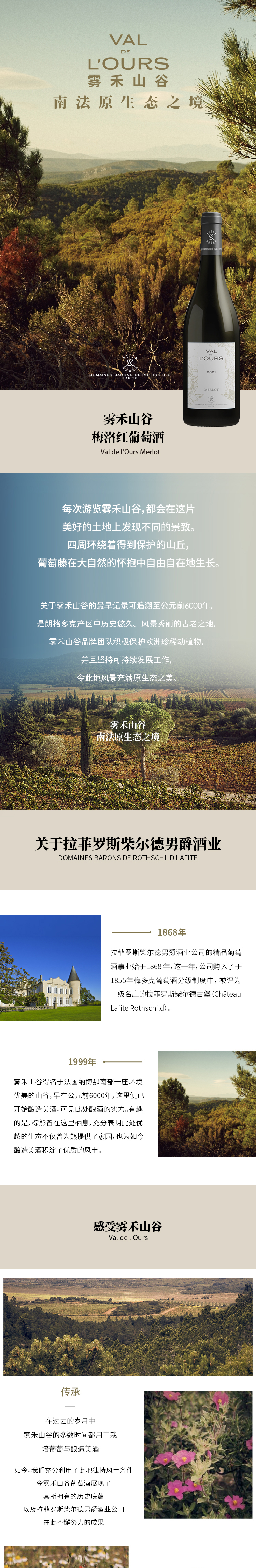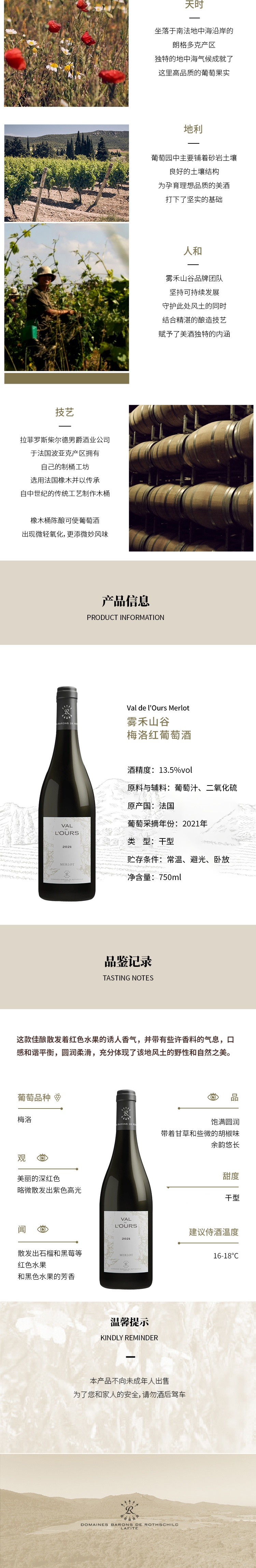法国进口拉菲罗斯柴尔德雾禾山谷梅洛红葡萄酒750ml/瓶