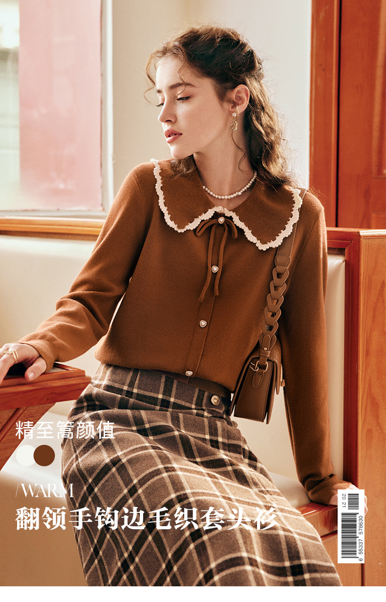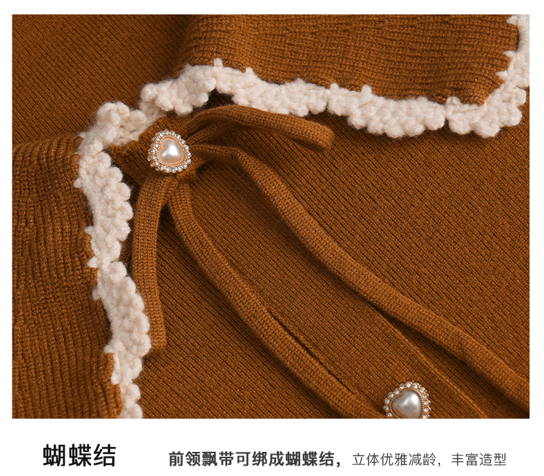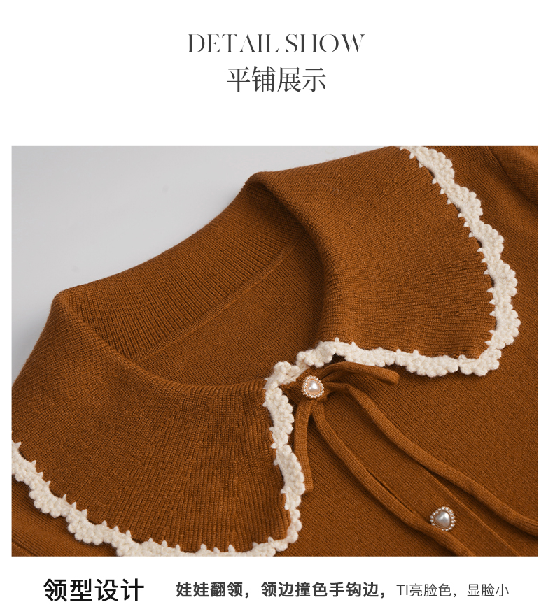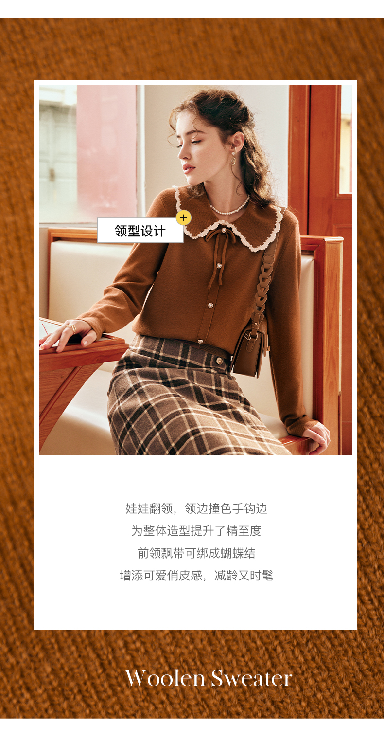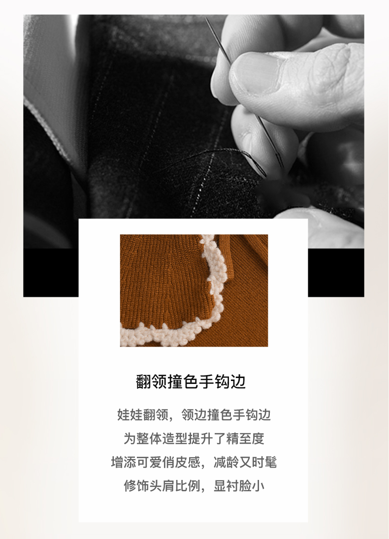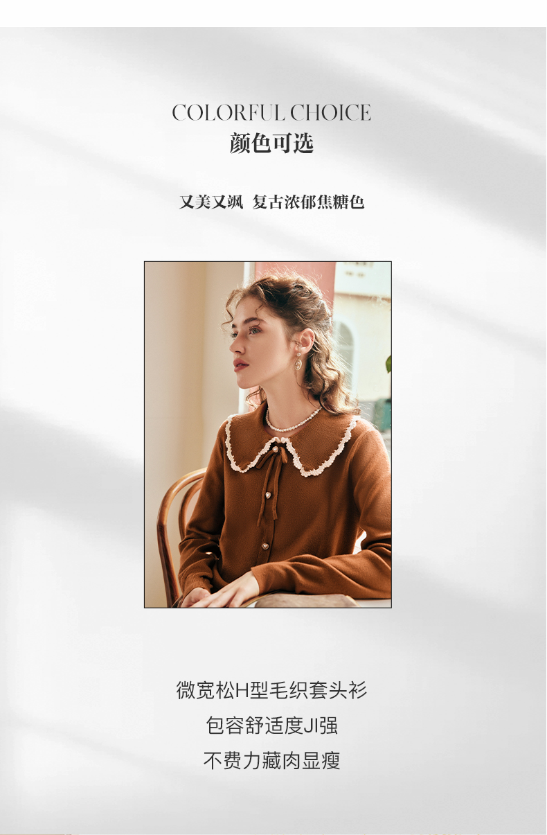 OLrain欧芮儿法式娃娃领套头毛衣女秋冬2022年新款复古撞色针织衫