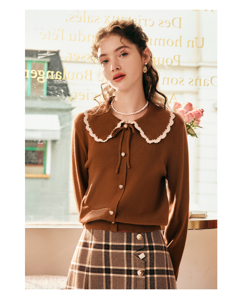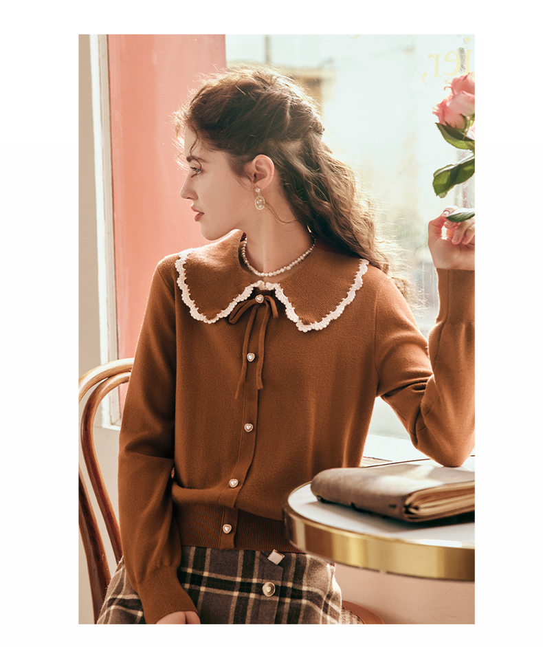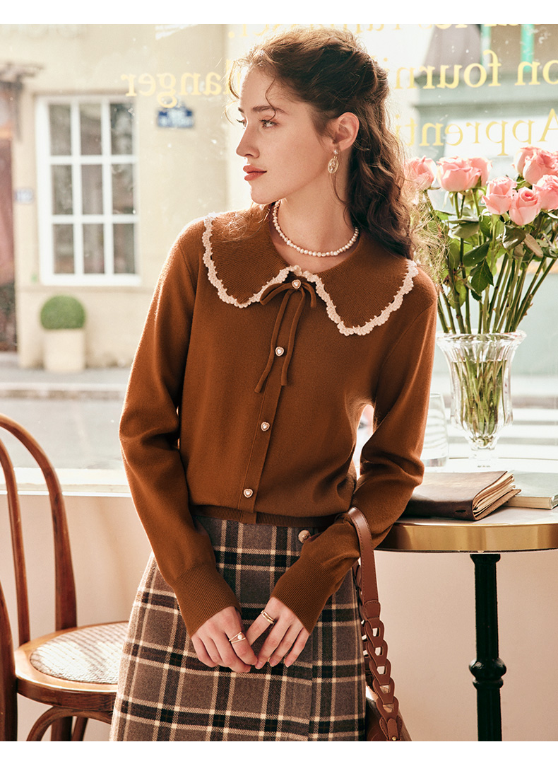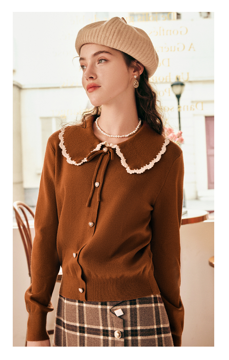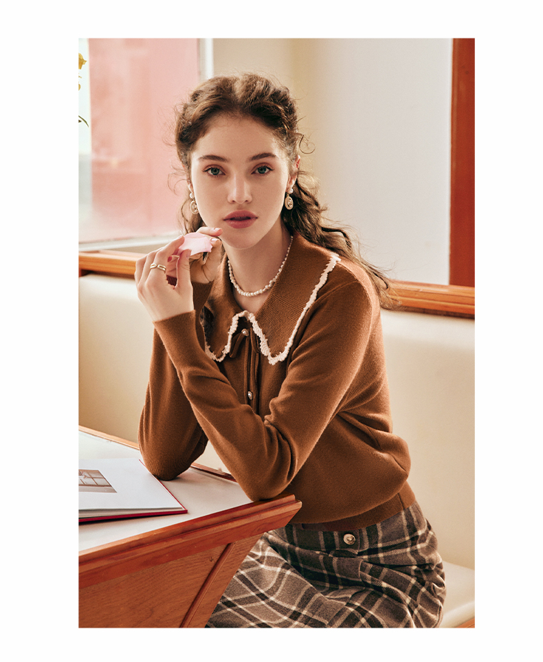 OLrain欧芮儿法式娃娃领套头毛衣女秋冬2022年新款复古撞色针织衫