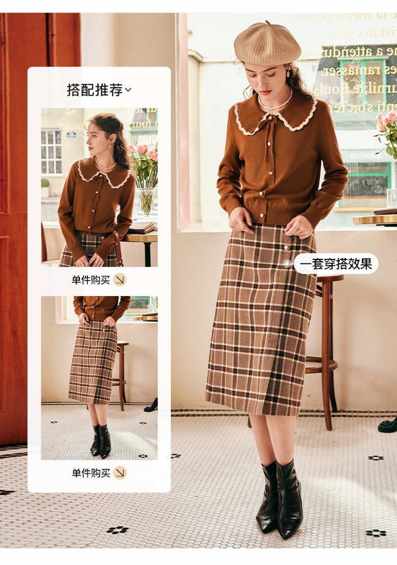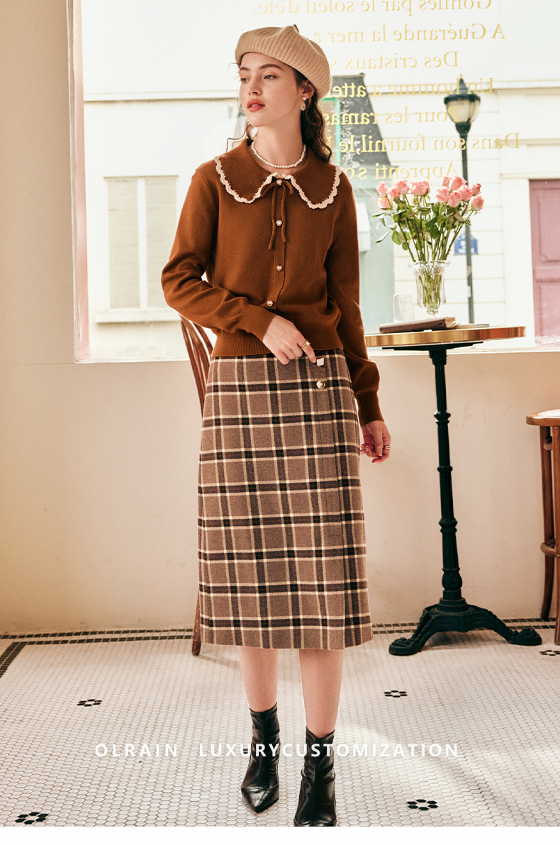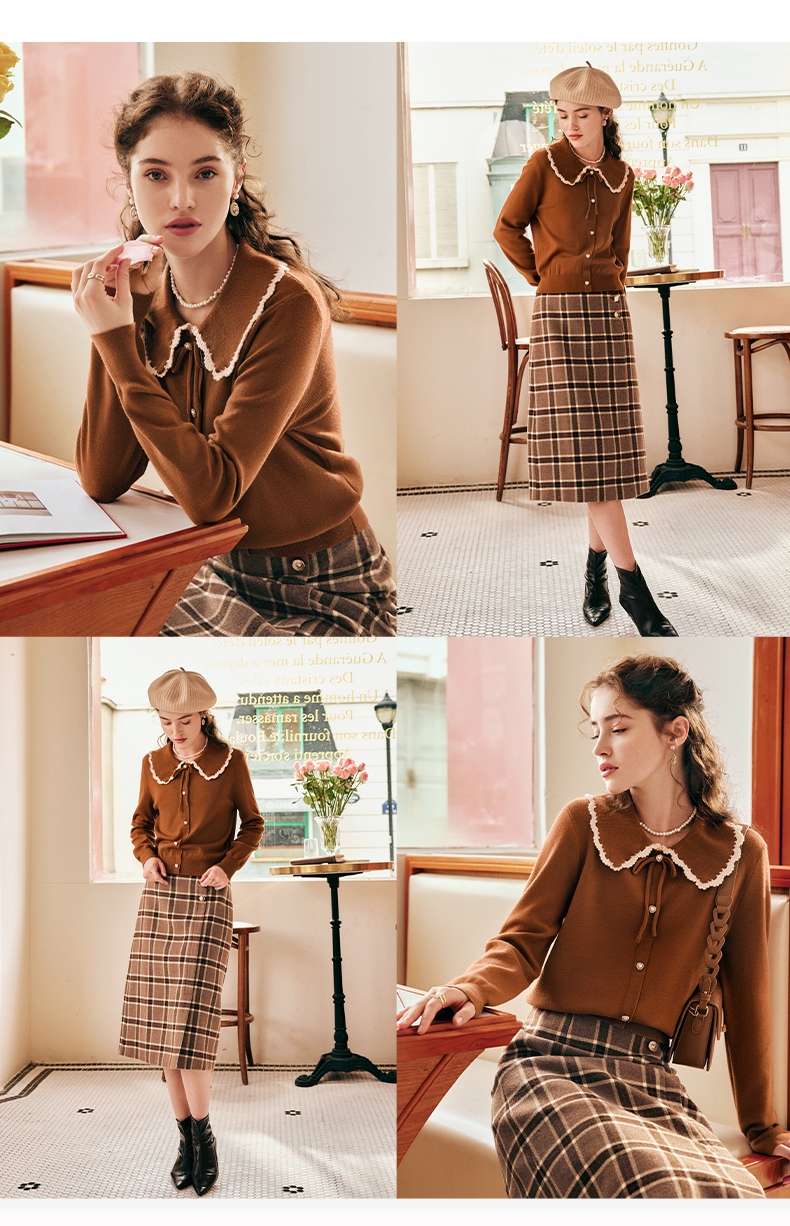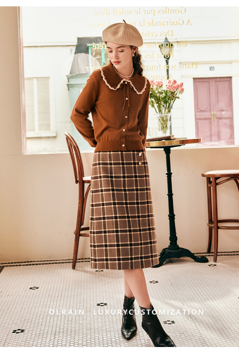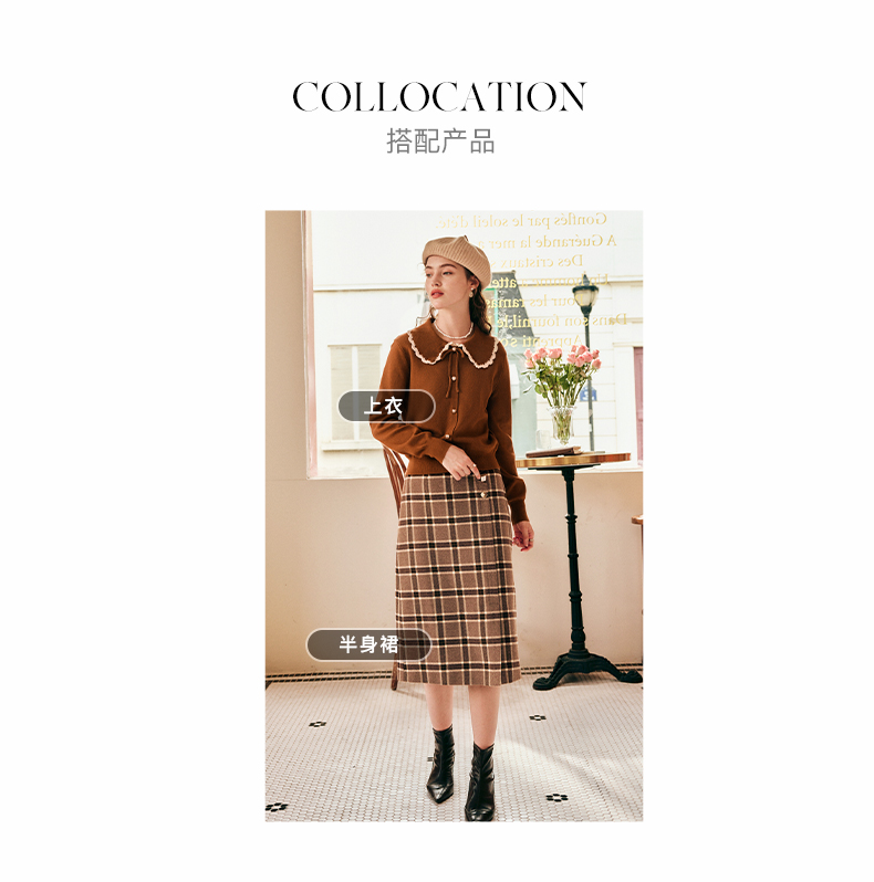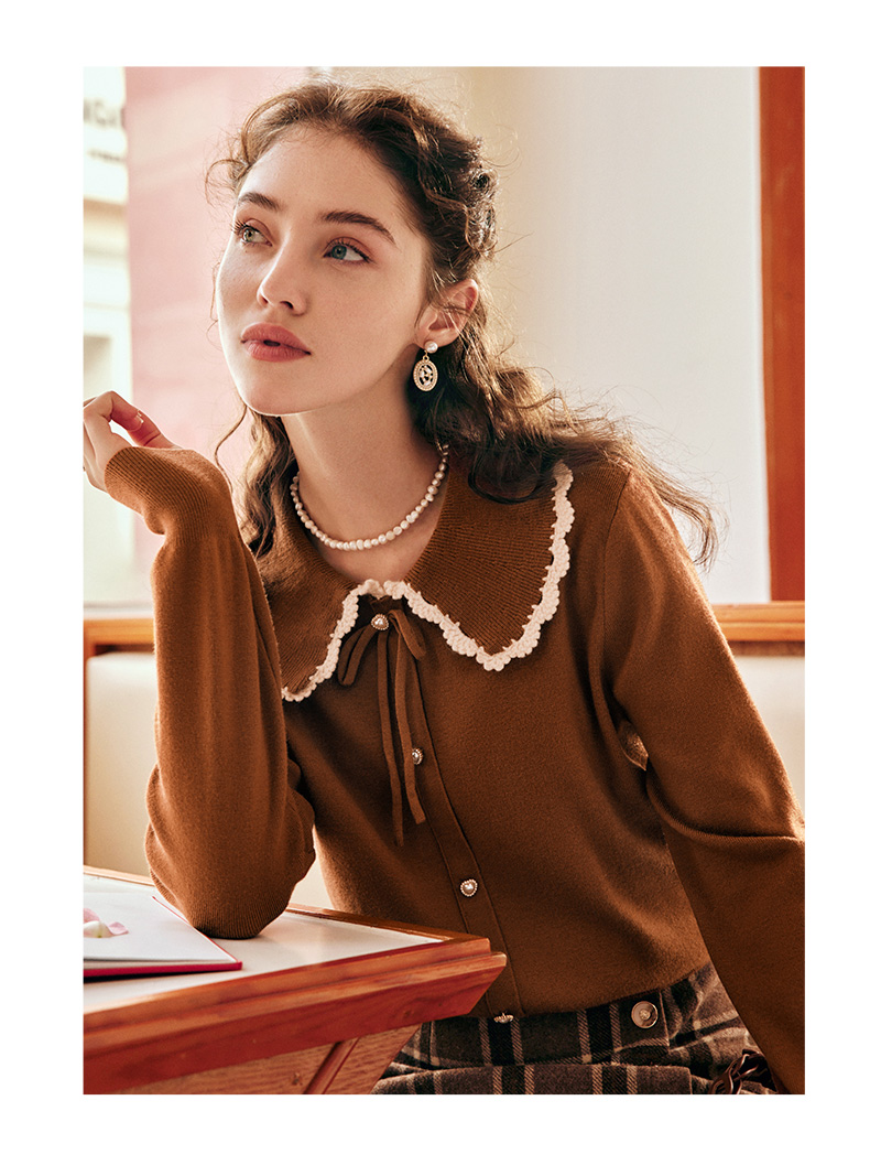 OLrain欧芮儿法式娃娃领套头毛衣女秋冬2022年新款复古撞色针织衫