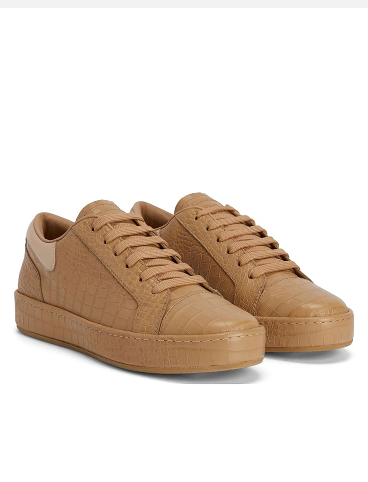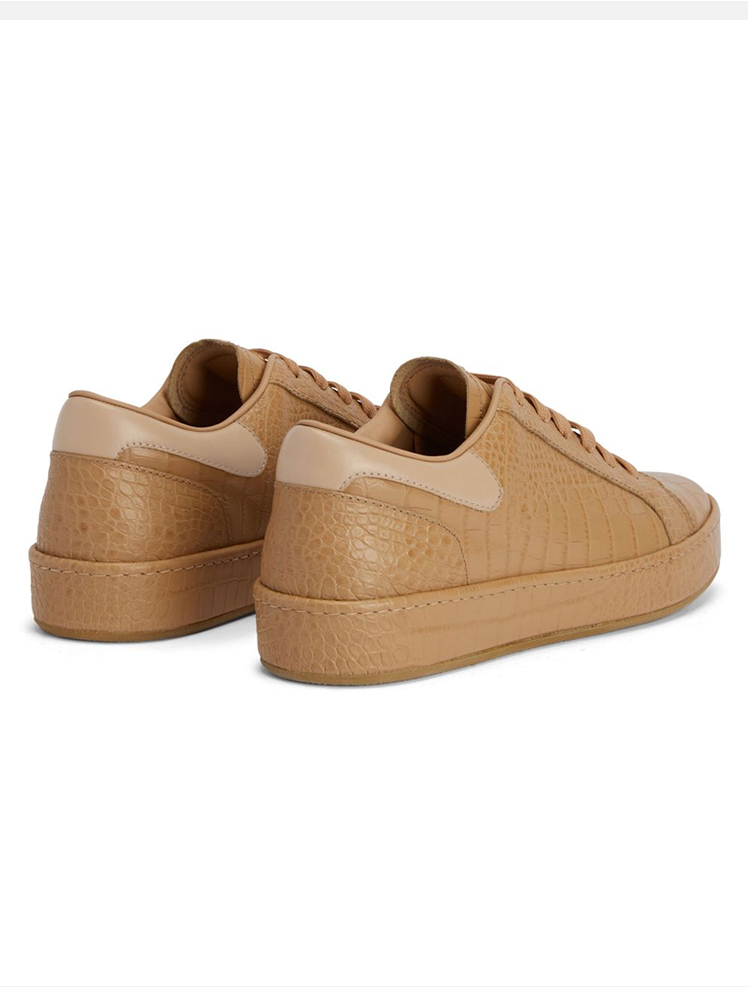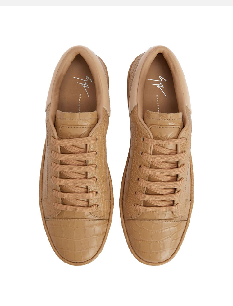 Giuseppe Zanotti 男士签名徽标压花鳄鱼纹皮革低帮休闲运动鞋 卡其色 RM40015003