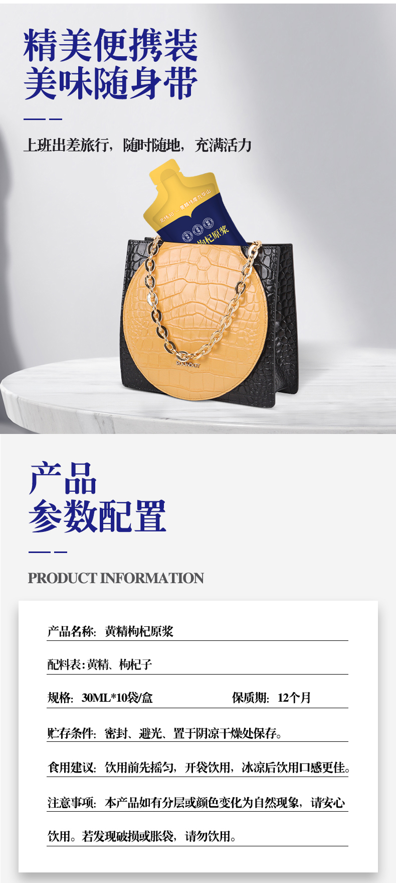 祥悦林九华黄精枸杞原浆30ml*10袋如是严选九蒸九晒黄精原液汁便携盒装