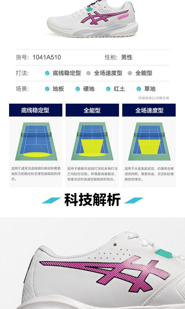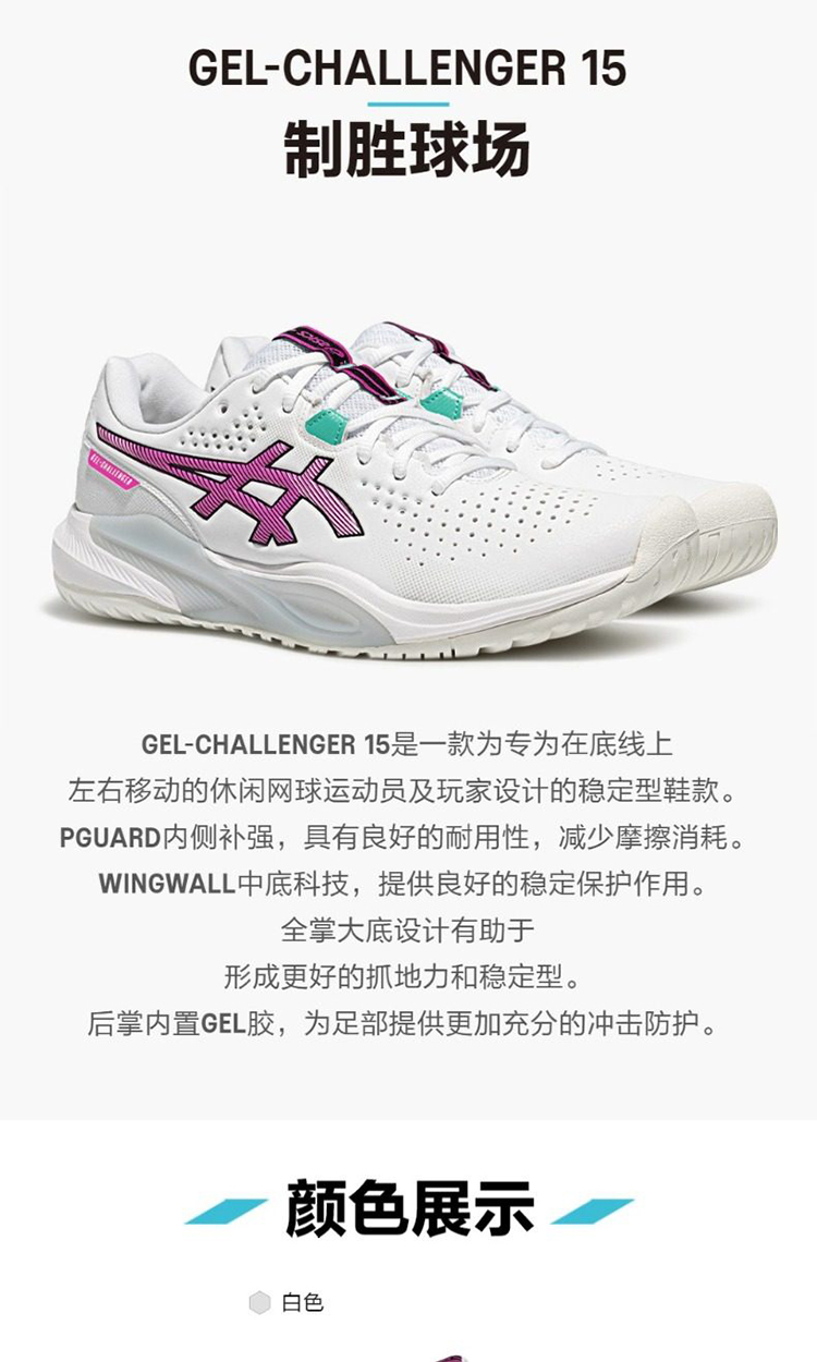 ASICS亚瑟士 CHALLENGER 15 男女款透气稳定舒适运动网球鞋