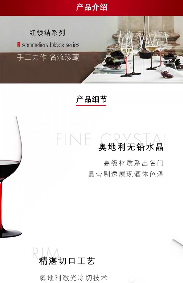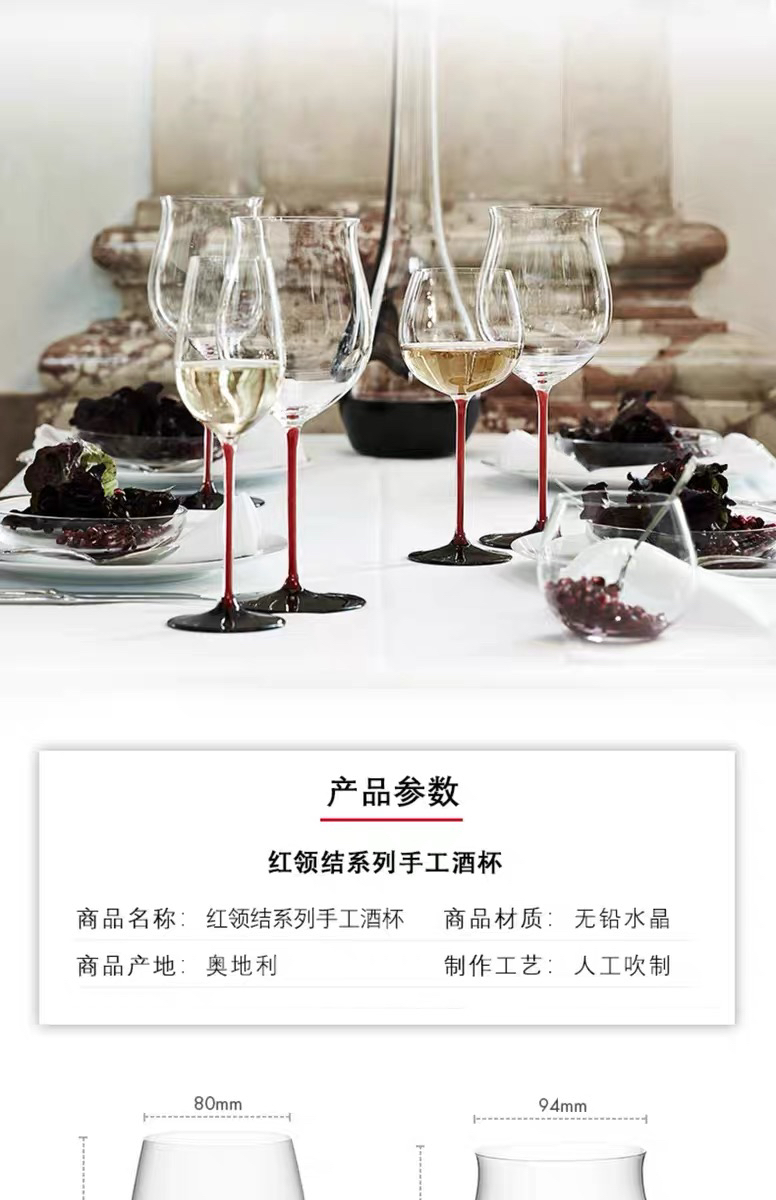奥地利RIEDEL红领结波尔多勃艮第手工水晶红酒杯香槟杯高颜值礼物