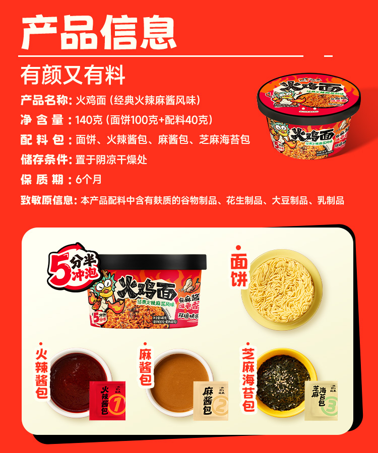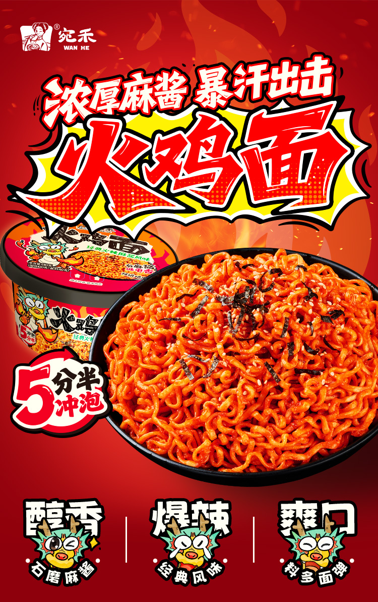 〖宛禾新品〗宛禾麻酱火鸡面140g/桶重辣黏糊劲道速食夜宵