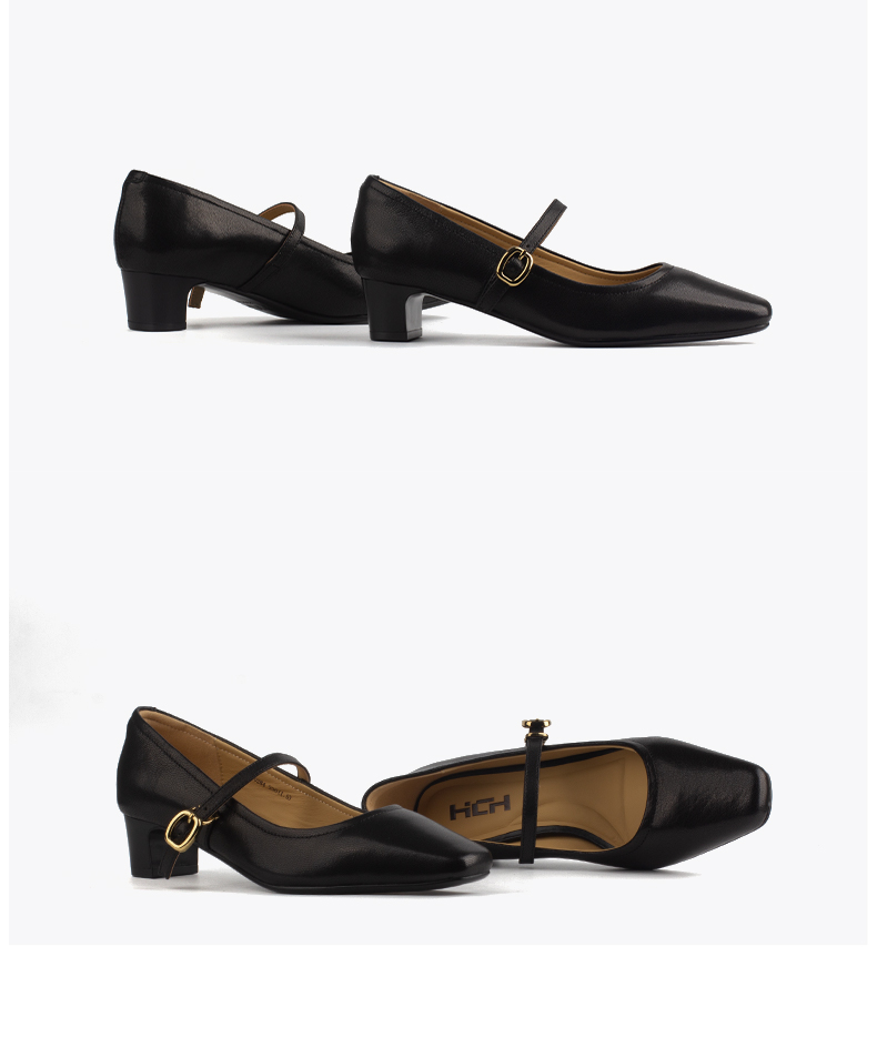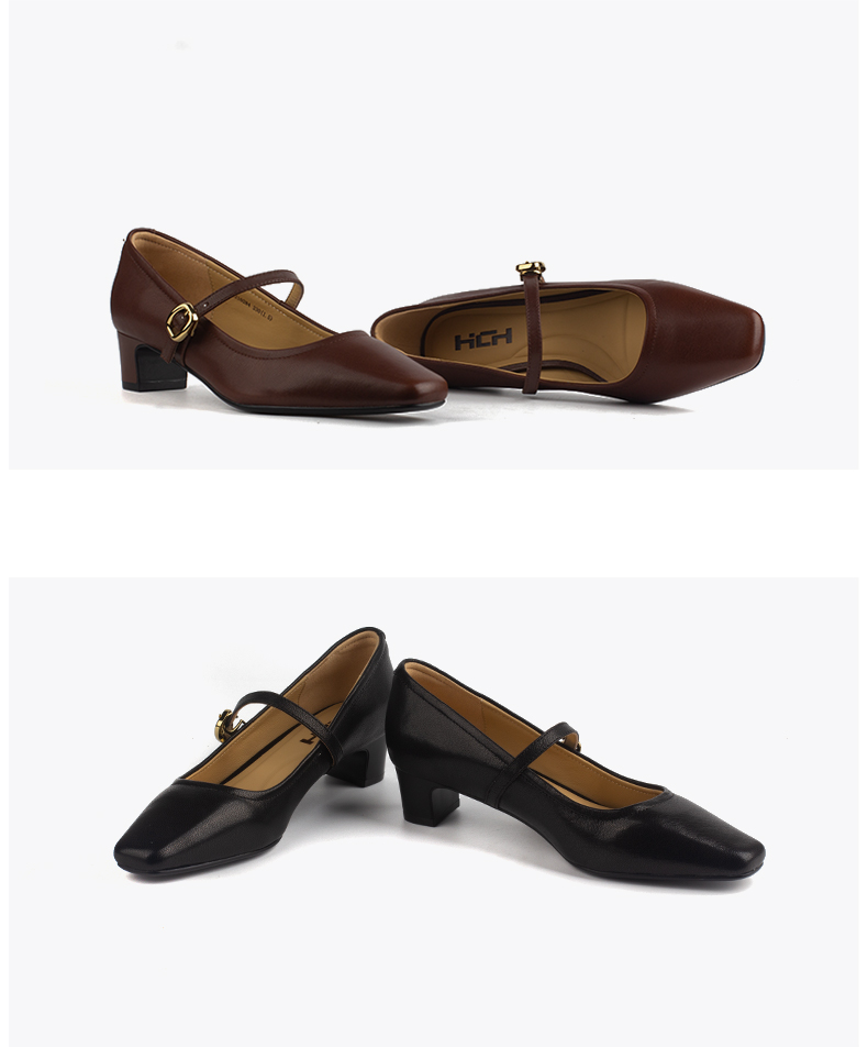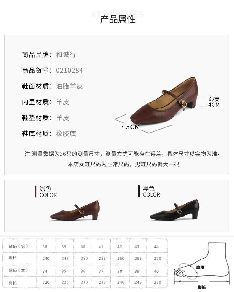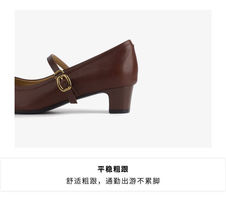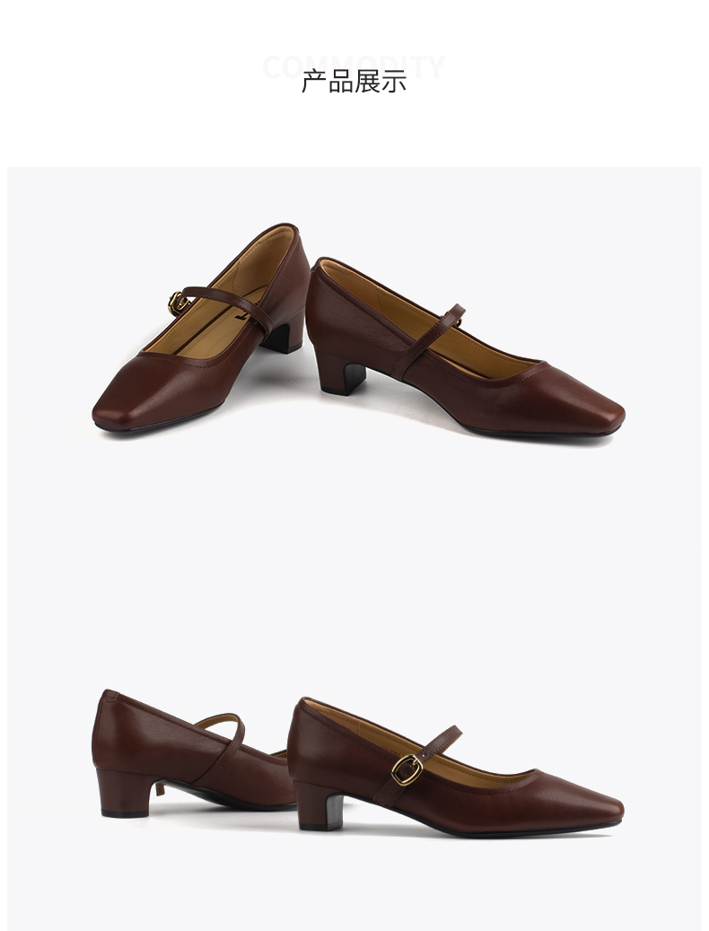 和诚行 2024秋冬新款法式复古方头皮鞋女浅口气质中跟单鞋0210284