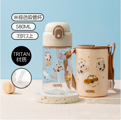 膳魔师tritan吸管杯小汽车580ml赠杯套-米棕SMS-BBST-580FBR-CAR/430FBL-CAR