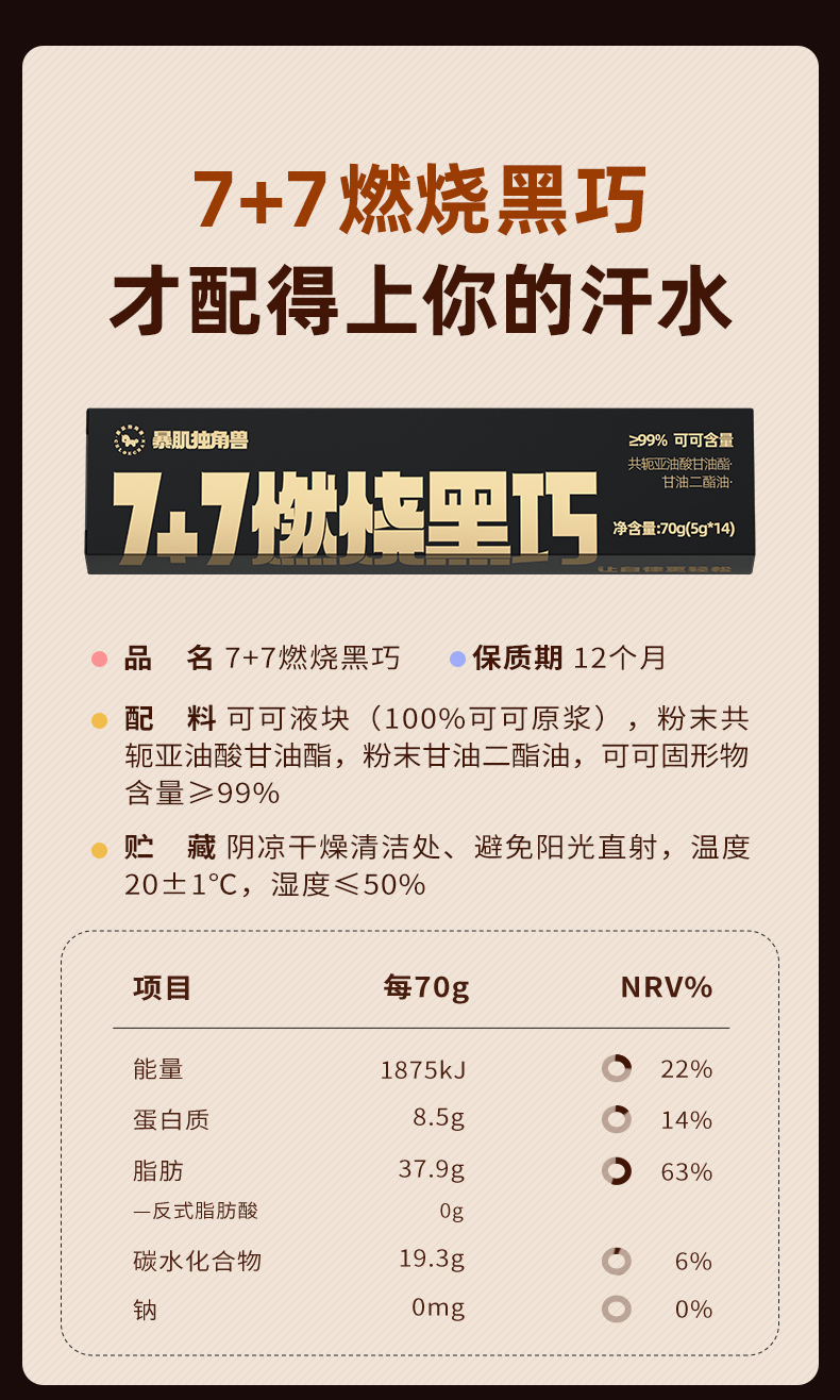 暴肌独角兽1盒燃烧黑巧克力70g*2盒