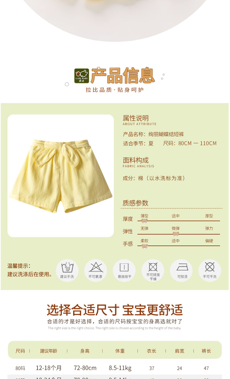 拉比-童衣类(夏)C9绚丽蝴蝶结短裤黄色