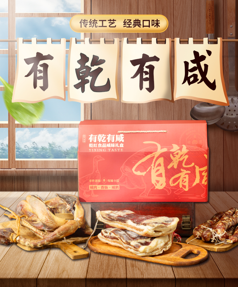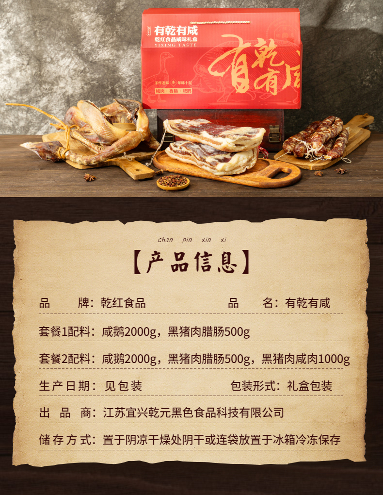 乾红食品有乾有咸·咸货年礼 咸鹅/黑猪肉腊肠/乌米腊肠/咸肉 年货礼盒