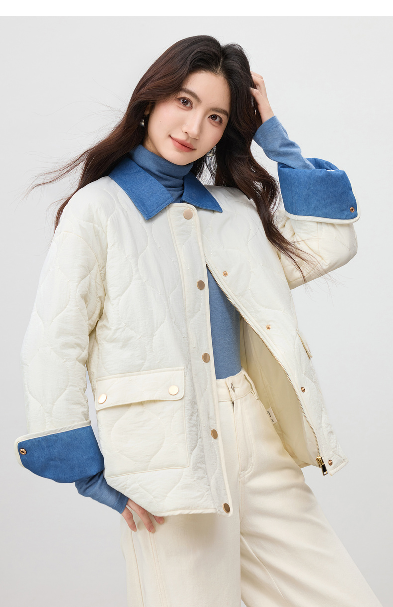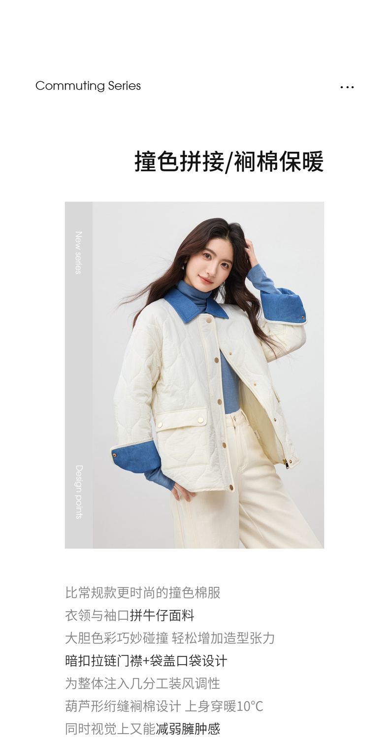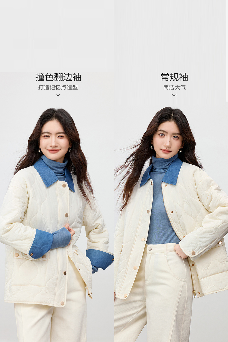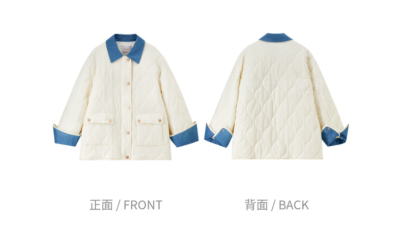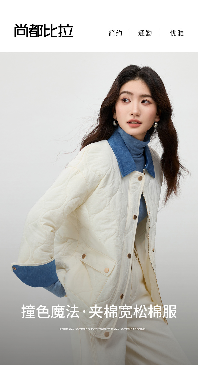 【内购】【夹棉保暖】时尚休闲通勤翻领拉链暗扣两穿袖落肩宽松不臃肿棉服-154M80542