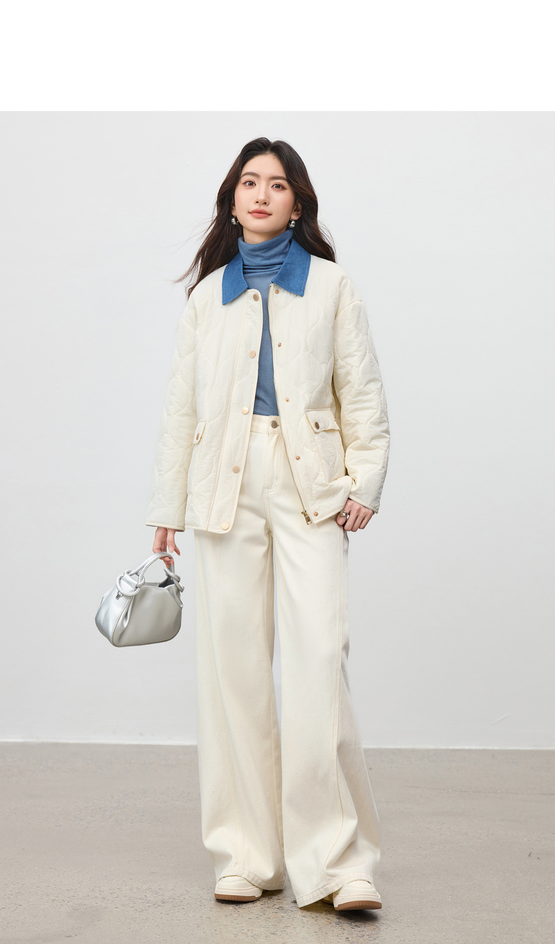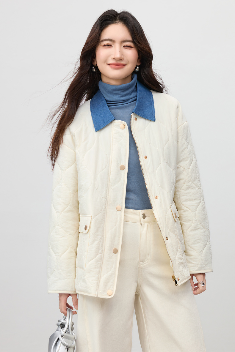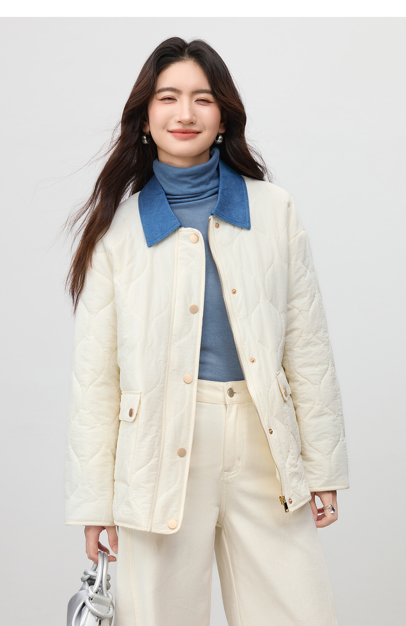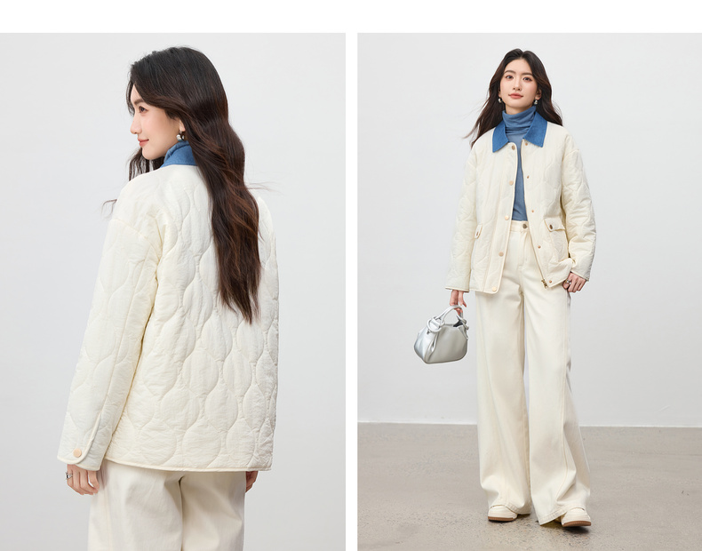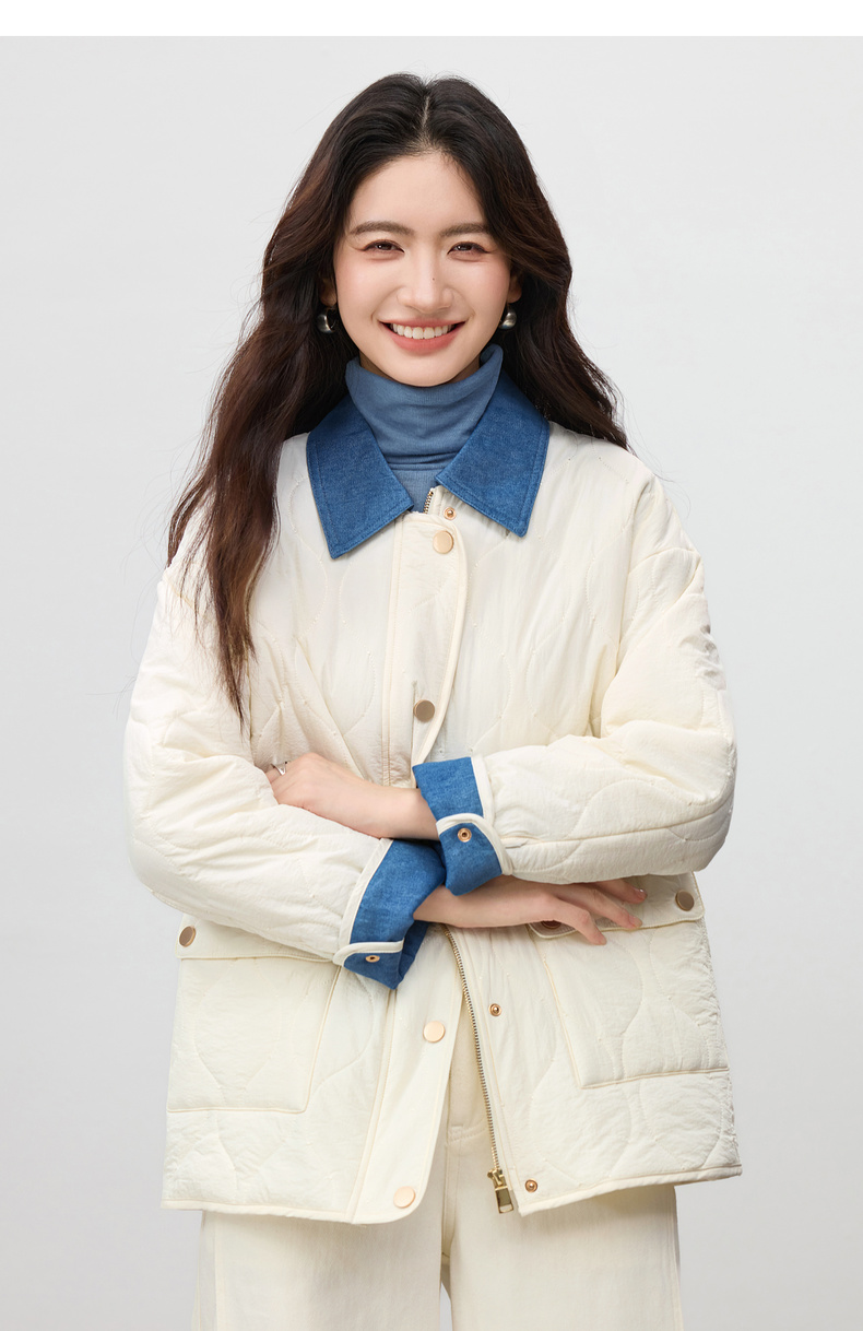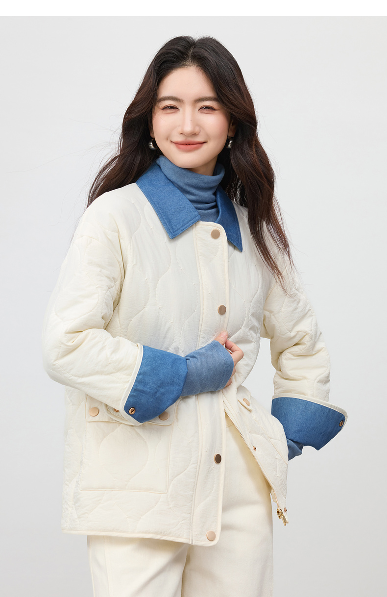 【内购】【夹棉保暖】时尚休闲通勤翻领拉链暗扣两穿袖落肩宽松不臃肿棉服-154M80542