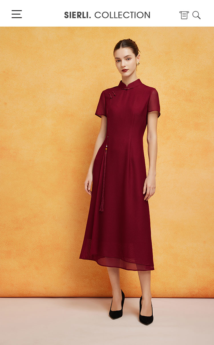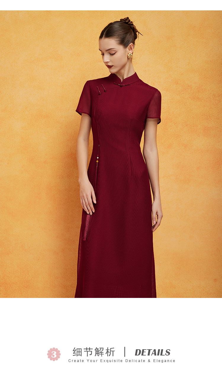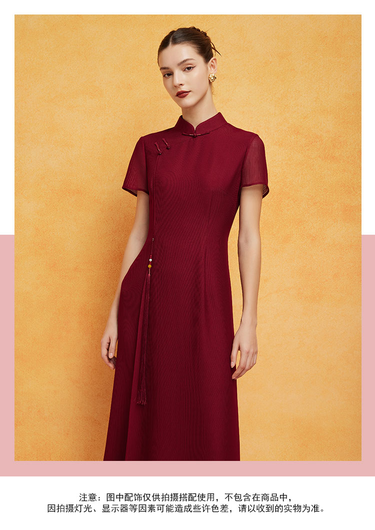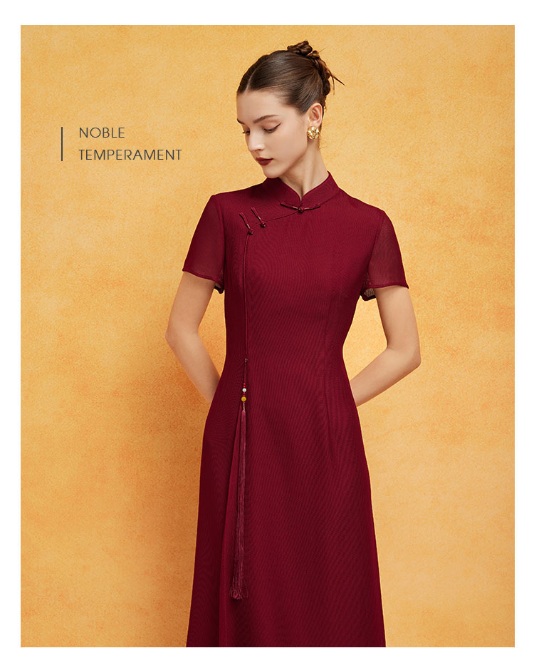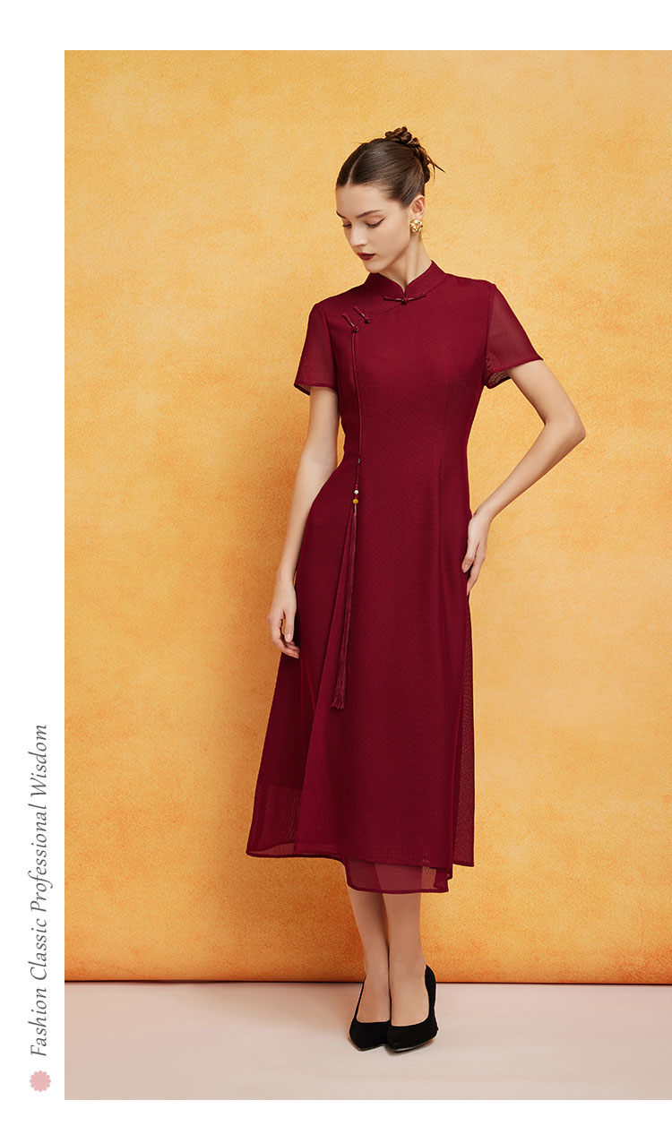 PF8L9斯尔丽24新款复古新中式改良旗袍手工盘扣流苏镂空网面垂坠连衣裙