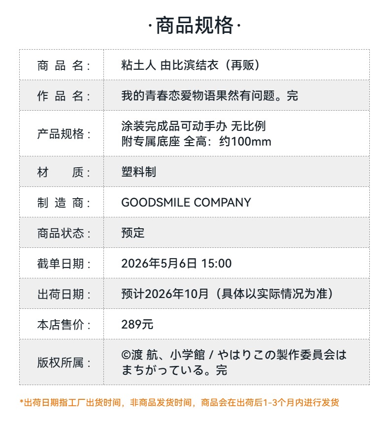 【GSC预售定金】粘土人 由比滨结衣 附官方限定特典 我的青春恋爱物语果然有问题。完