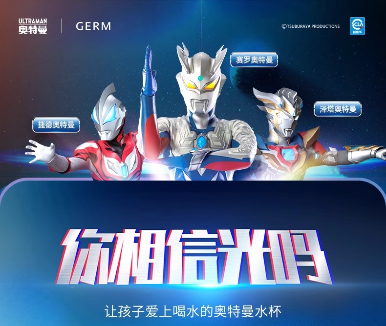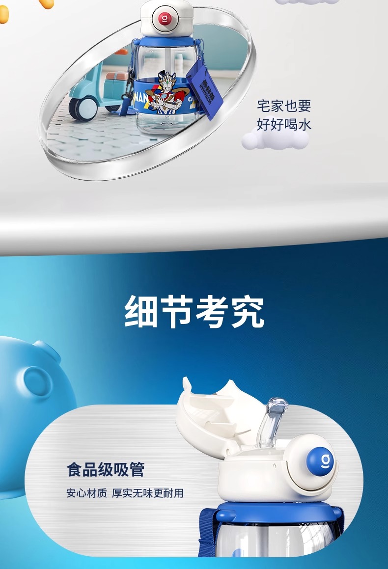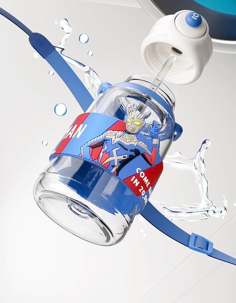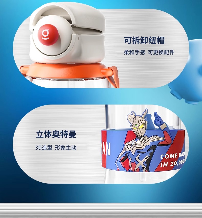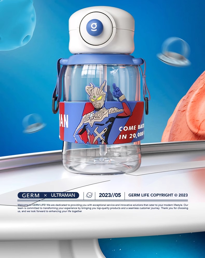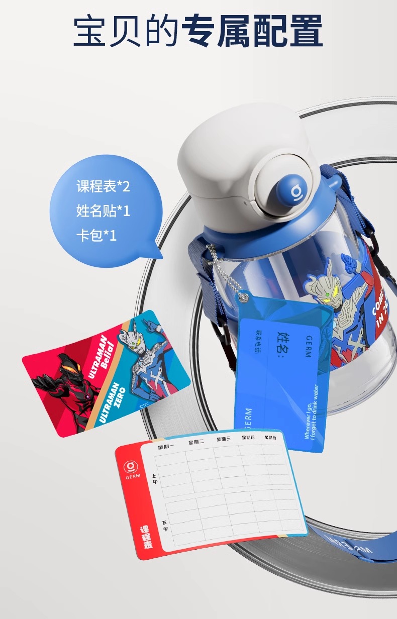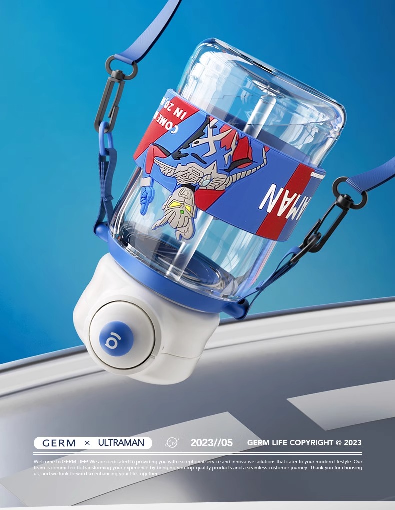 日本GERM格沵 奥特曼系列追光者水杯 儿童上学专用夏季男孩生幼儿园大容量吸管杯子水壶 550ML