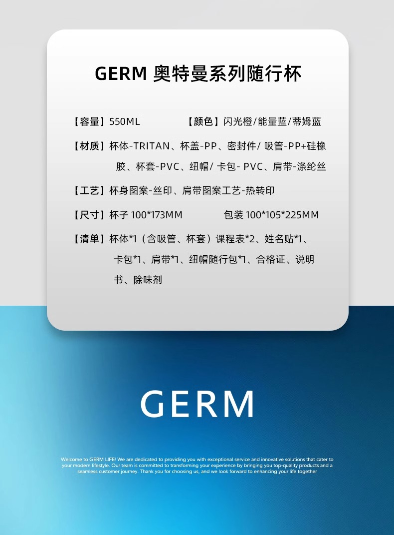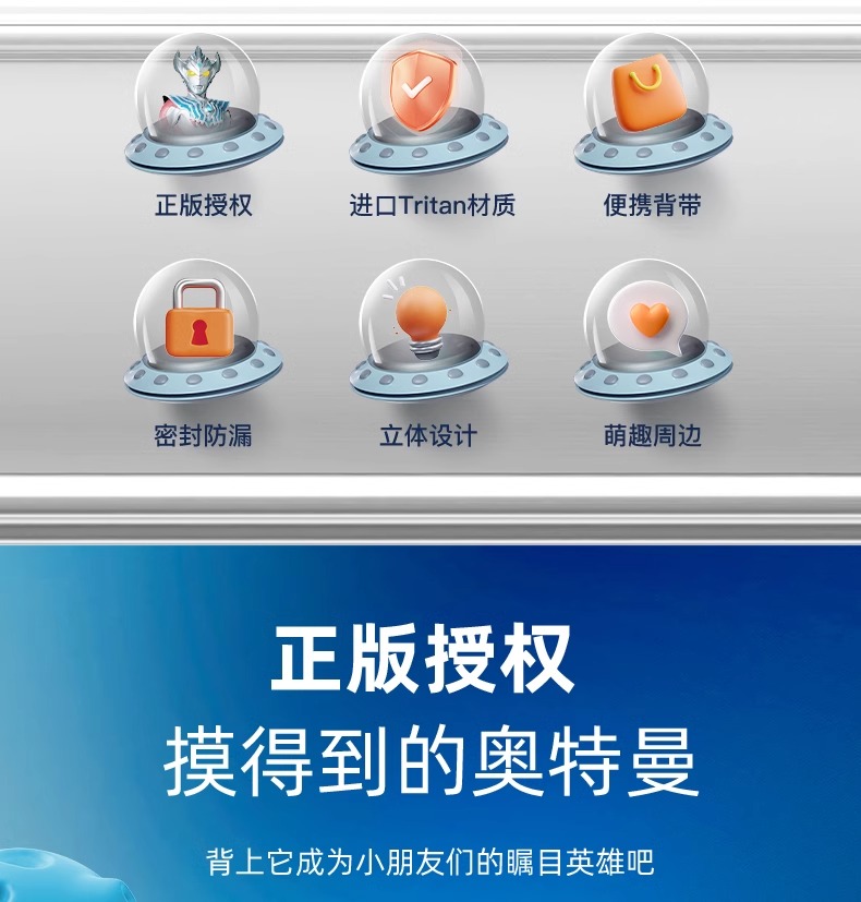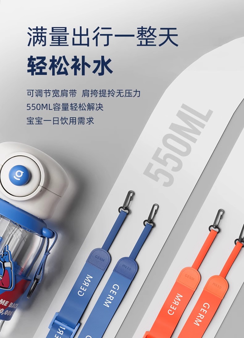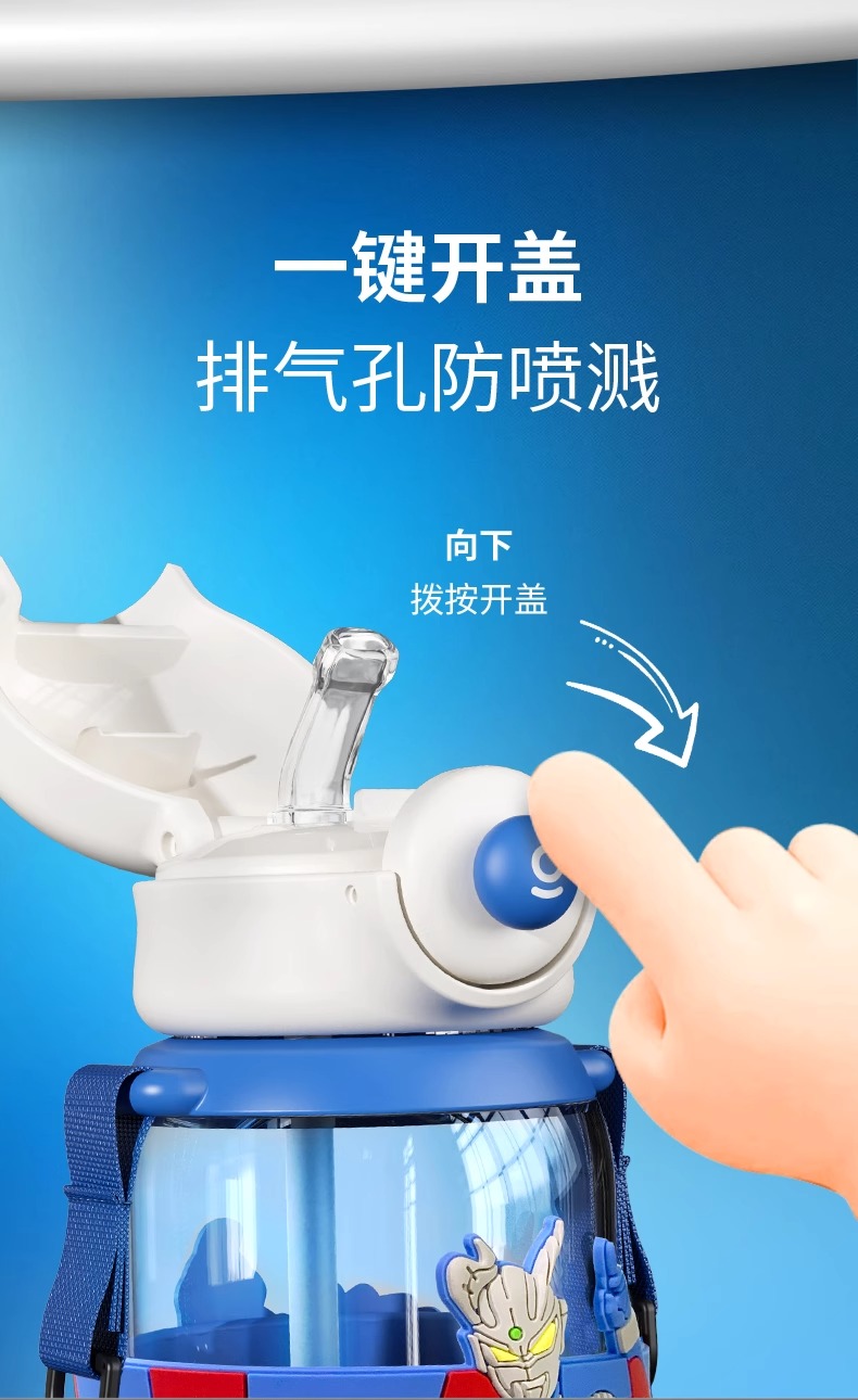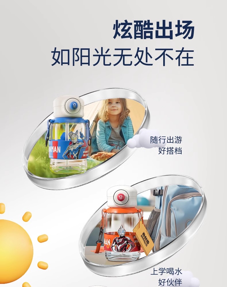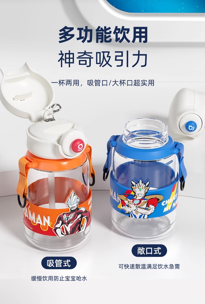 日本GERM格沵 奥特曼系列追光者水杯 儿童上学专用夏季男孩生幼儿园大容量吸管杯子水壶 550ML
